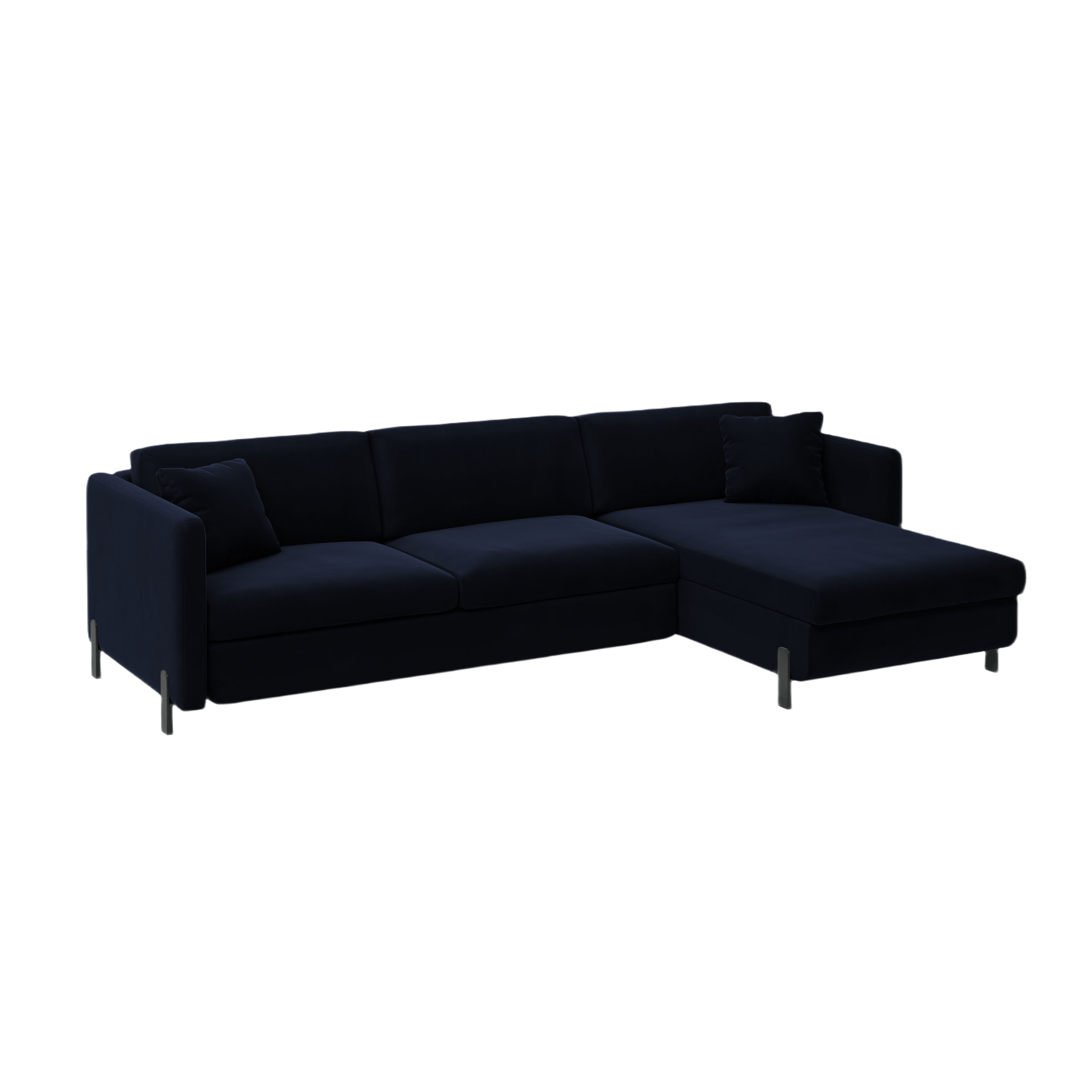 Fluwelen hoekbank rechts met slaapfunctie GLORIA koninklijk blauw