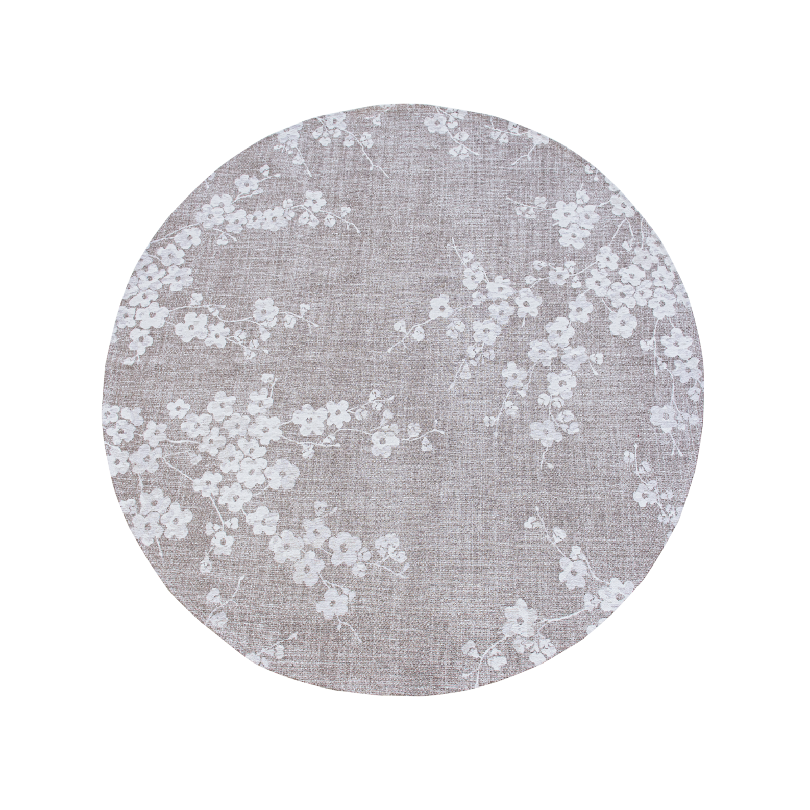 Ronde vloerkleed FLOWER SPOT ecru met zwart