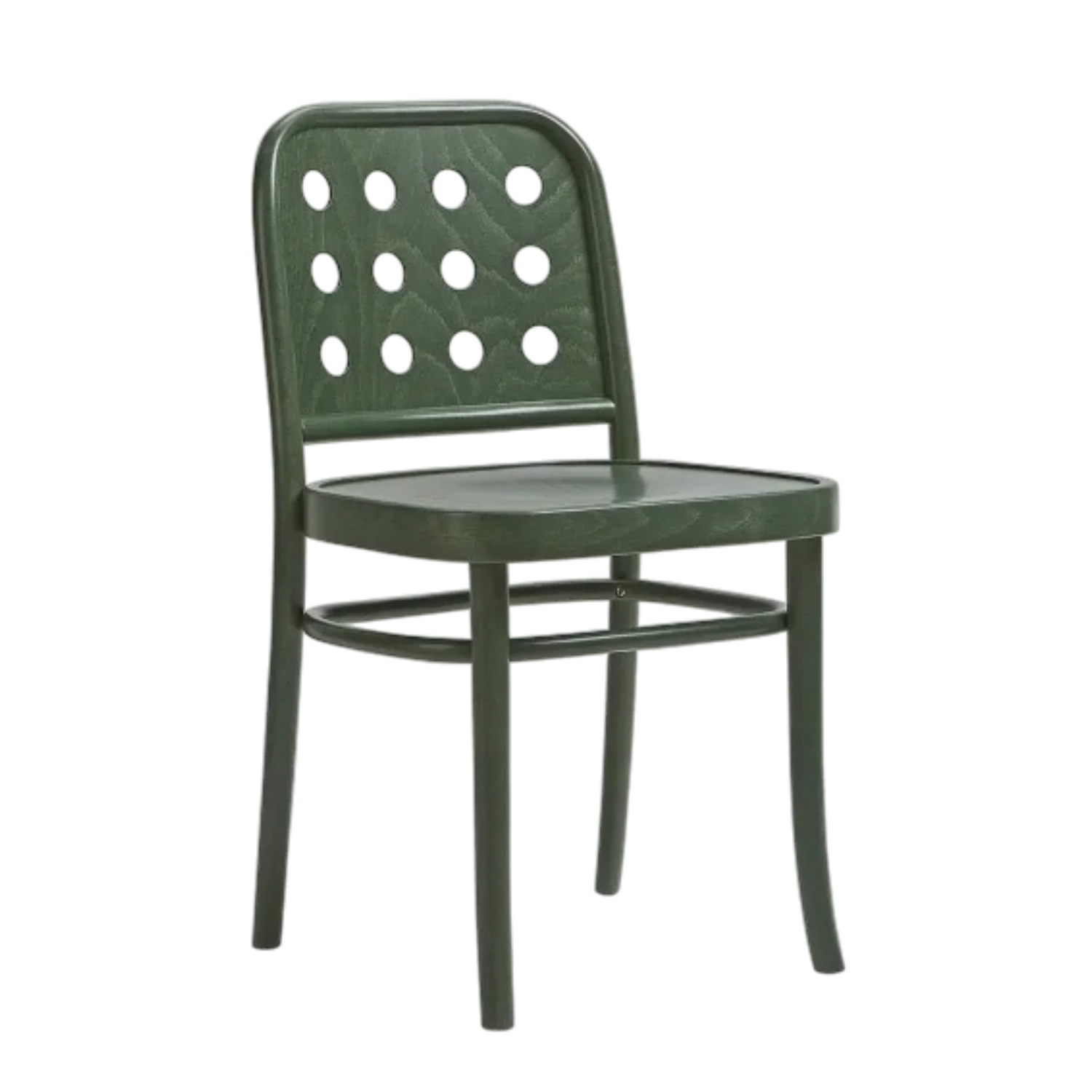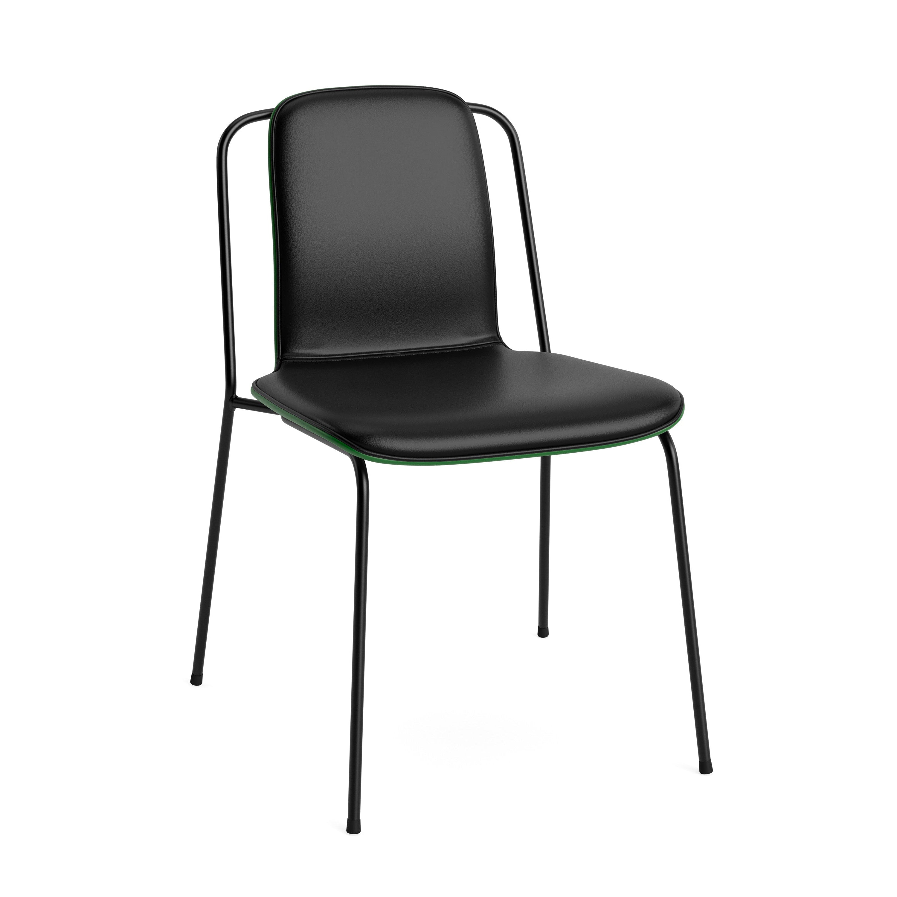 STUDIO stoel met gestoffeerde voorkant van groene essenhoutfineer en zwarte basis
