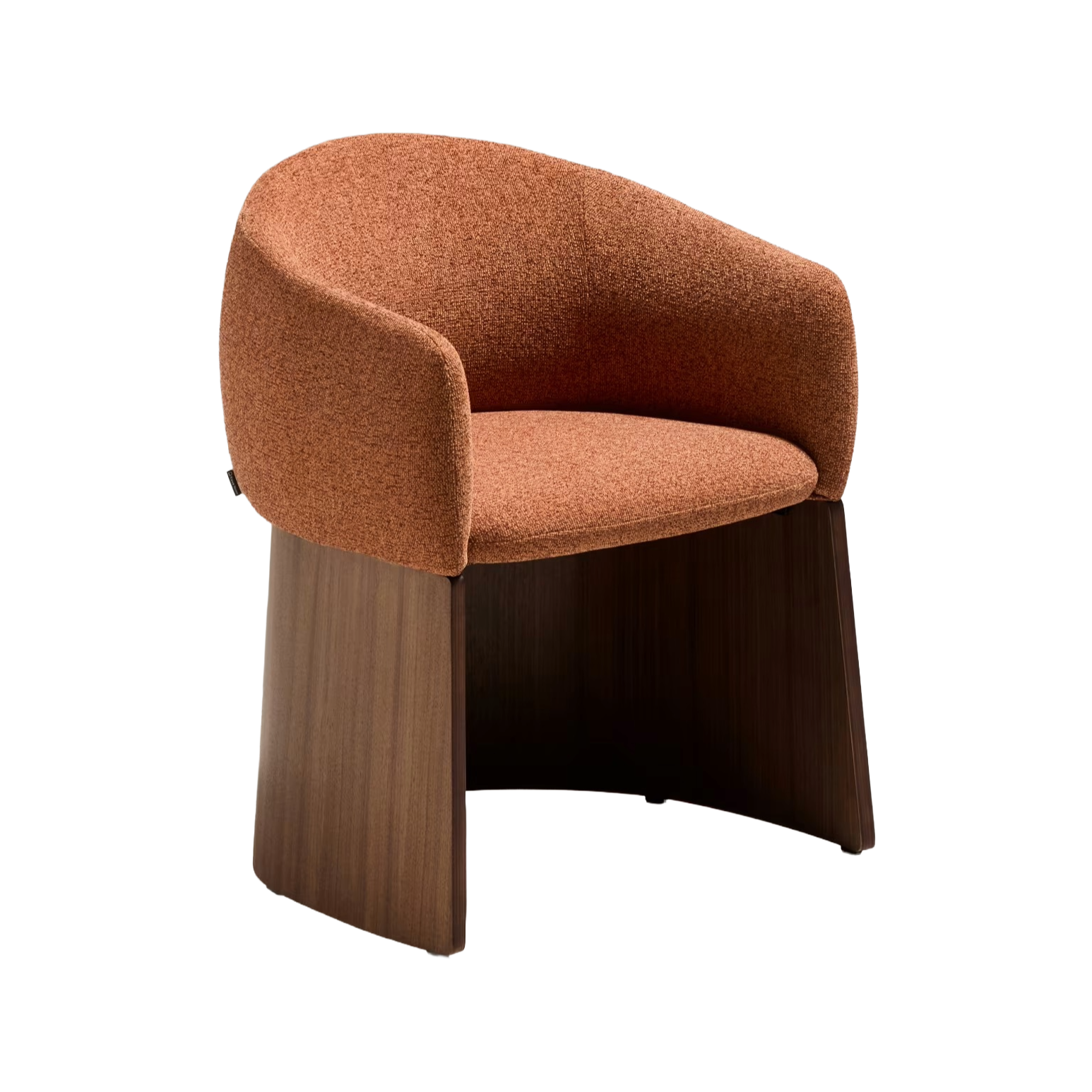 Stuhl BOSCA ziegelroter Chenille mit einer Basis aus Nussbaumfurnier
