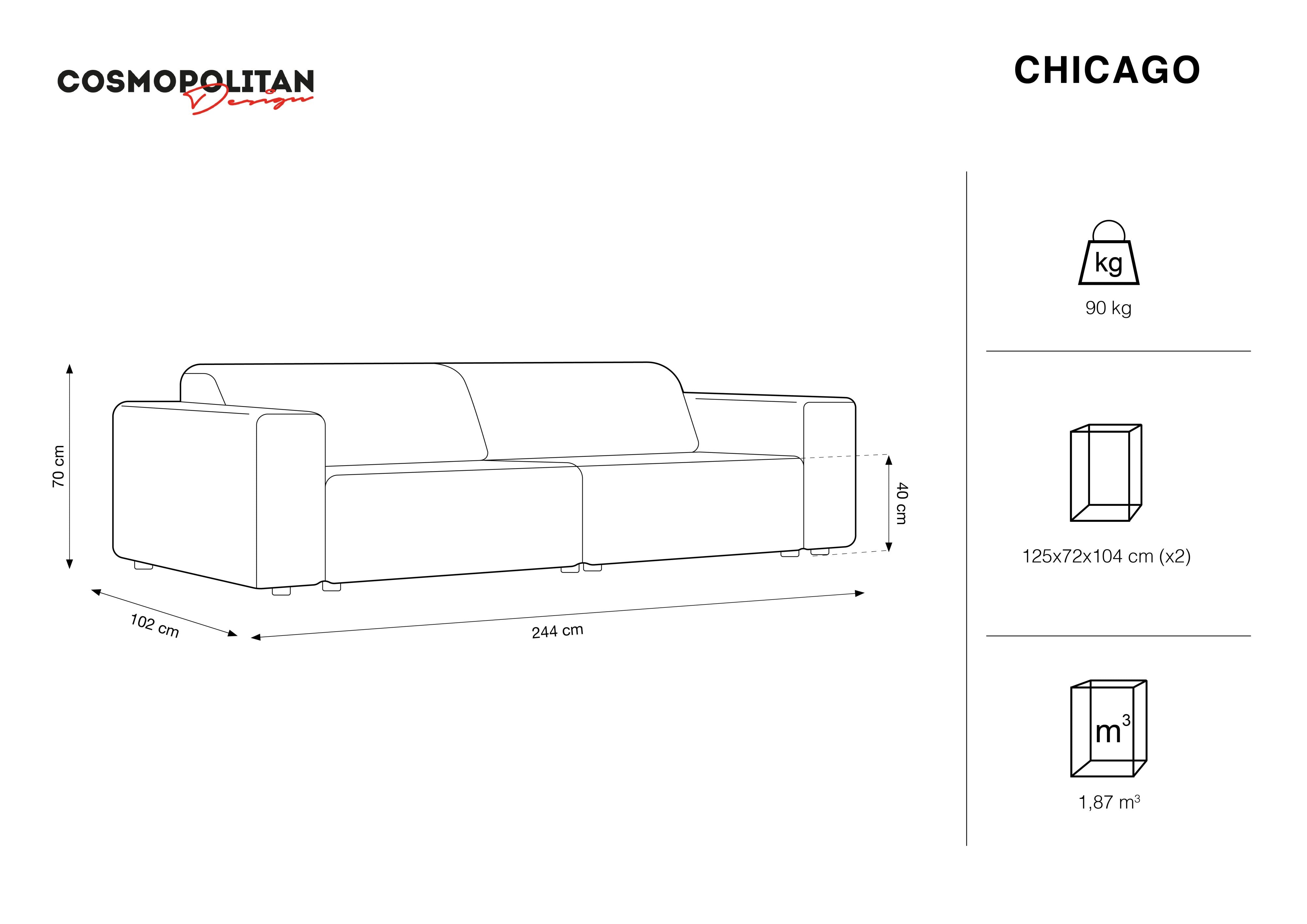 Samtene Sofa Chicago zeichnet sich durch ein außergewöhnliches Design aus, bei dem die sanft gepolsterten Sitze und die zahlreichen Nähte an den Rückenlehnen der Gesamtheit ein raffiniertes Aussehen verleihen. Die niedrige, ausladende Form strahlt außergewöhnlichen Chic aus und unterstreicht perfekt den Stil des Wohnzimmers. Die elastischen, tiefen Sitze mit üppiger Polsterung garantieren nicht nur Komfort, sondern auch vollständige Entspannung nach einem langen Tag.