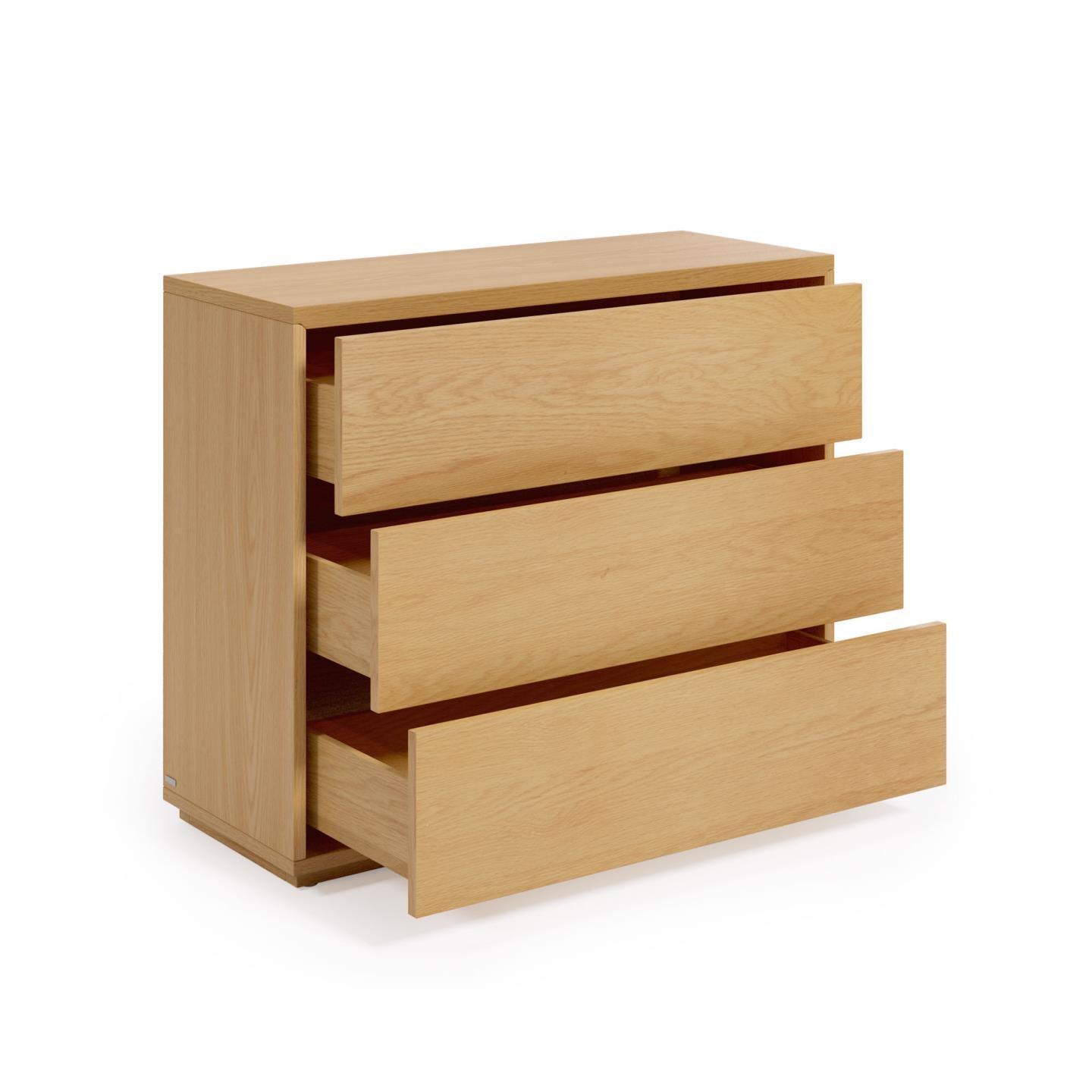 Die minimalistischen Linien des Abilen-Designs machen die Kommode nicht nur funktional, sondern auch zu einem ästhetischen Element der Innenraumgestaltung. Das neutrale Eichenfurnier sorgt dafür, dass die Kollektion universell ist und sich hervorragend mit verschiedenen Raumstilen kombinieren lässt.