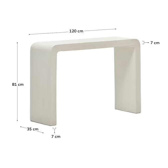Zementkonsole Aigablava ist eine hervorragende Manifestation des minimalistischen Designs, das mit einfachen Linien angereichert ist, die den Charakter einer Anordnung hinzufügen. Die Einzigartigkeit dieser Sammlung liegt in ihrem Zement, was Möbeln nicht nur ein modernes Aussehen, sondern auch Zuverlässigkeit und Haltbarkeit verleiht.