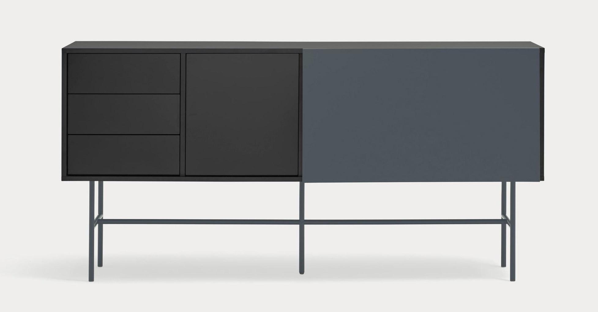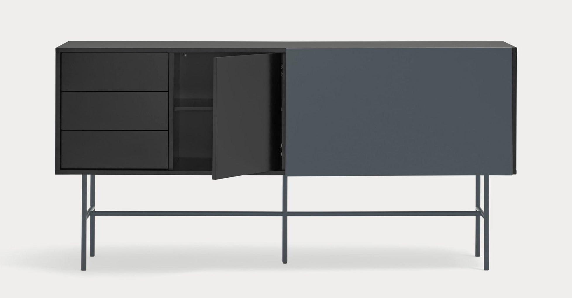 Breites Kabinett mit einer einzigartigen Anthrazitfarbe. Die Nube -Sammlung wird durch eine ungewöhnliche und ausdrucksstarke Konfiguration dank der Schiebetür ausgewiesen, die frei eingerichtet werden kann und sich an individuelle Vorlieben anpasst. Die Art und Weise, wie sich diese Tür auf dem breiten Nube -Schrank bewegt und verschiedene Teile ihres Innenraums enthüllt und versteckt, leitet sich von der Art und Weise inspiriert, wie sich die Wolken am Himmel bewegen.