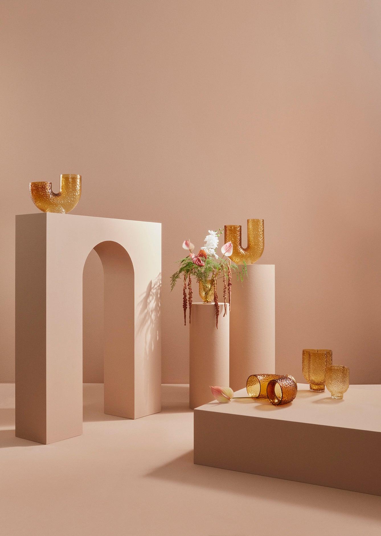 Vasen Die Arura-Vasen sind aus geblasenem Glas gefertigt, was jeden einzelnen zu einem Unikat macht. Sie sind ein hervorragendes Beispiel für ein exzentrisches Design, das entstanden ist während des Spiels mit der Form. Ddekorationen Die Arme der Vase sind ihr Markenzeichen — die Vase Arura hat modernund gleichzeitig ein elegantes Aussehen. Die blasenförmige und unebene Oberfläche verleiht mu nutę awangardy.