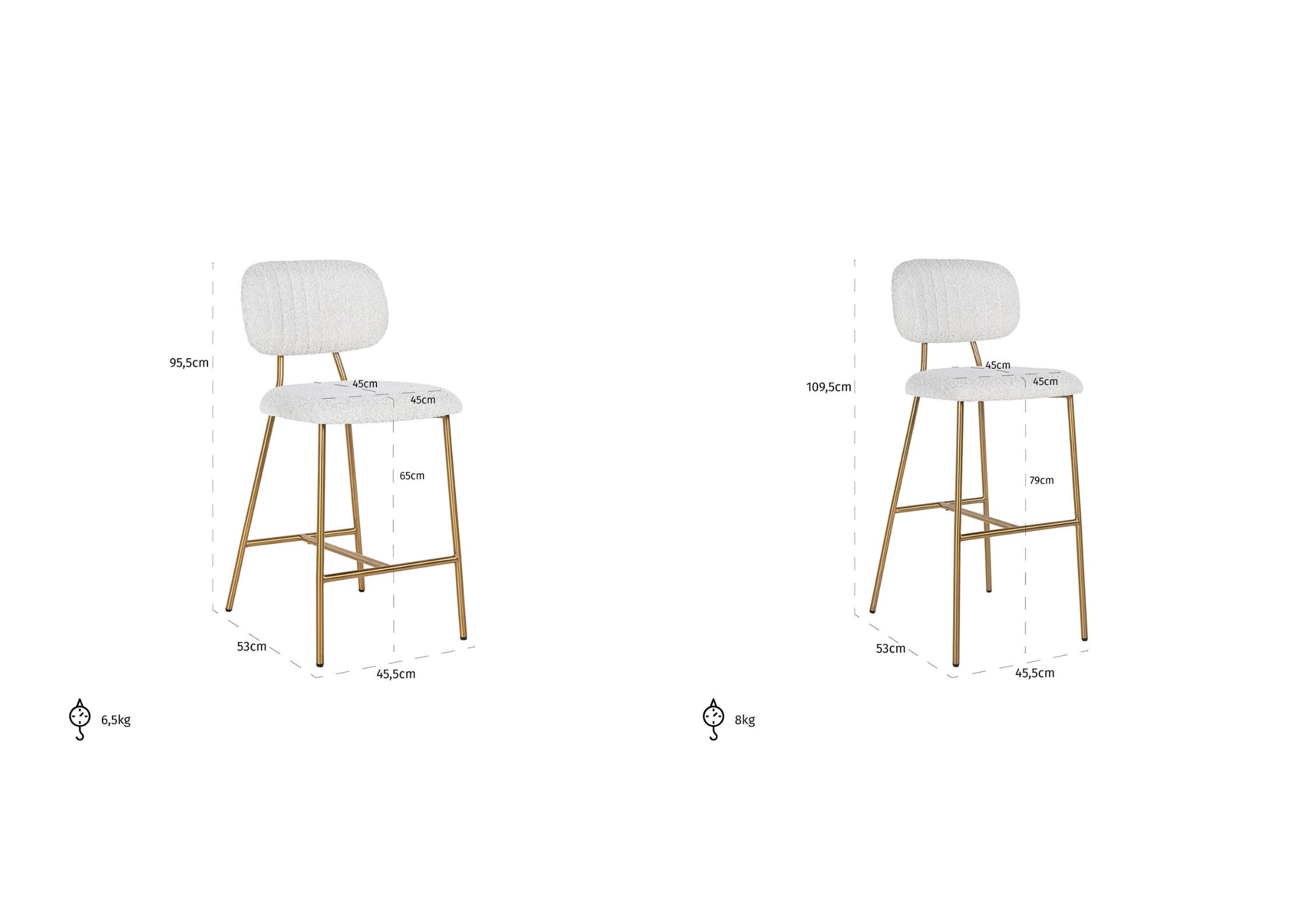 Bar Xenia ist ein einzigartiges Möbelstück, das die Aufmerksamkeit aller Glamour -Liebhaber auf sich zieht. Seine charakteristische Unterstützung, die mit klarem Nähten und Sitzpolster aus elegantem Bouclé -Stoff in einem weißen Schatten geschmückt ist, verleiht ihm einen ungewöhnlichen Charme.