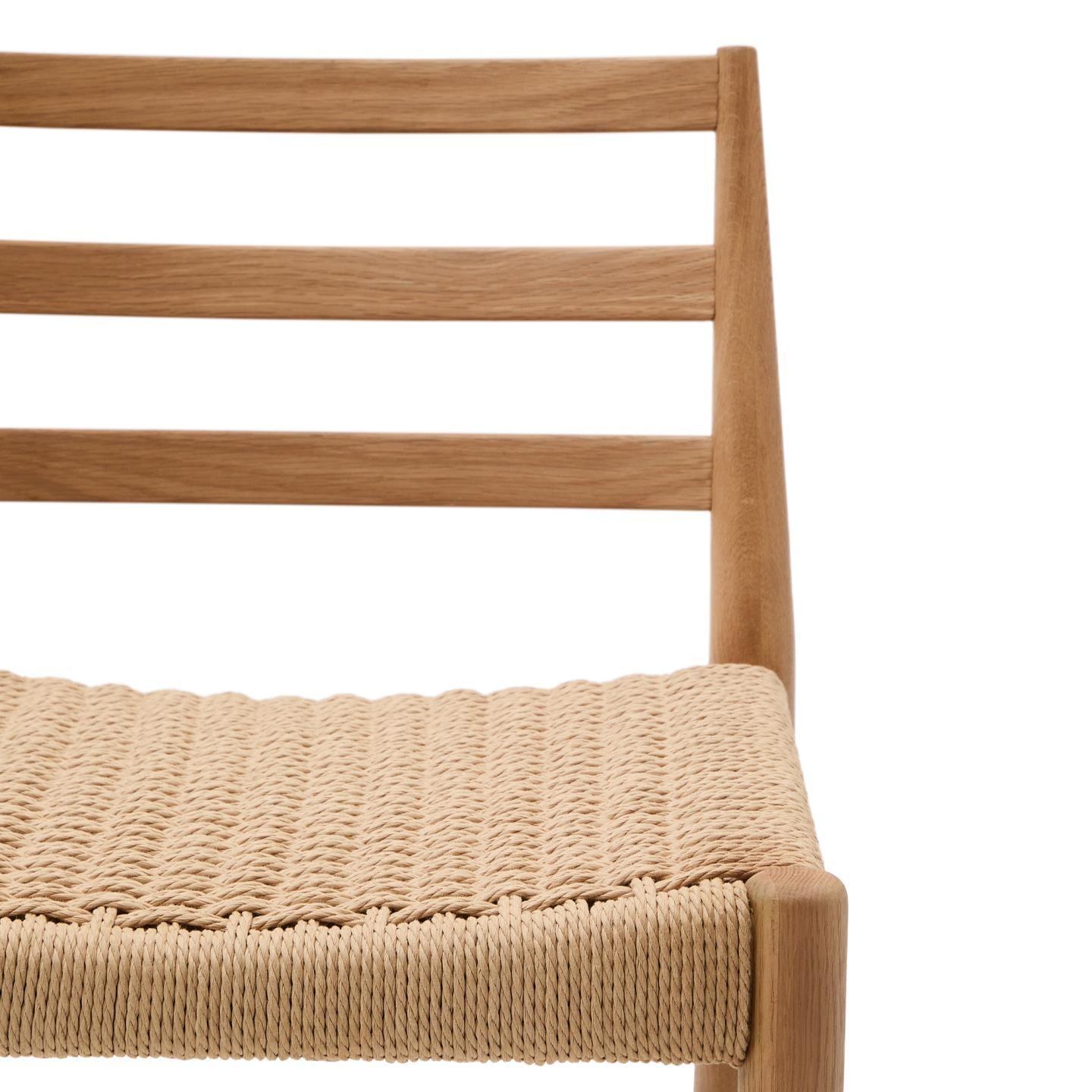 Die Sitzfläche des Stuhls Analy wurde sorgfältig aus handgewebtem Papierseil gefertigt, was ihm einen einzigartigen Charakter verleiht und unvergleichlichen Komfort bietet. Die außergewöhnliche Kombination der Materialien schafft eine harmonische Komposition, die eine Atmosphäre der Ruhe und Nähe zur Natur in Ihr Zuhause bringt.