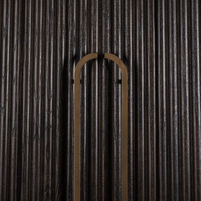 Elegante Beine und Griffe aus mattem Gold bereichern das Design der Kommode und verleihen ihm einen luxuriösen Akzent. Es ist ein Möbelstück, das dem Stil der 60er Jahre huldigt und gleichzeitig moderne Elemente einführt, was eine harmonische Gesamtheit mit außergewöhnlichem Charme schafft.