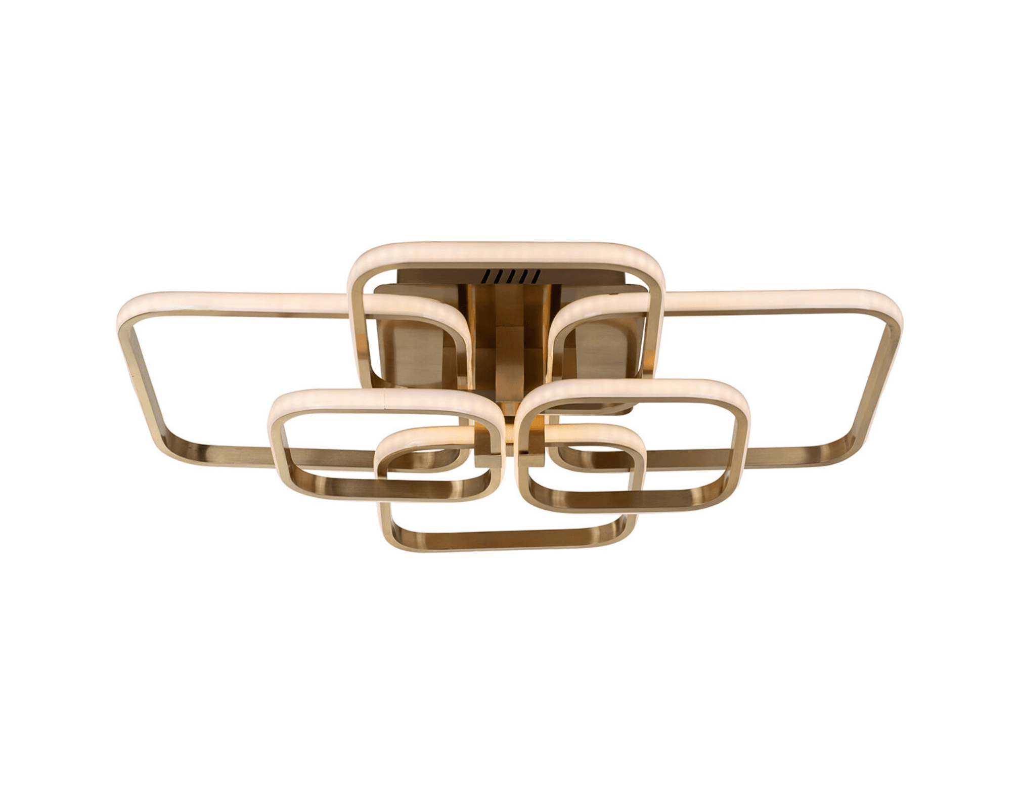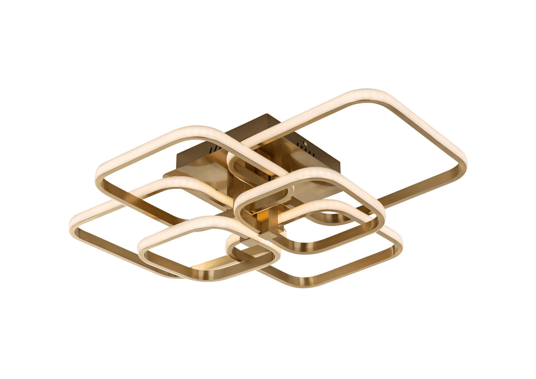 Ein außergewöhnliches Element der Lampe sind die quadratischen Ringe, die nahtlos ineinander übergehen und so ein faszinierendes und modernes Muster bilden. Diese geometrische Verbindung schafft eine einzigartige Komposition, die die Aufmerksamkeit auf sich zieht und dem Interieur einen besonderen Charakter verleiht.