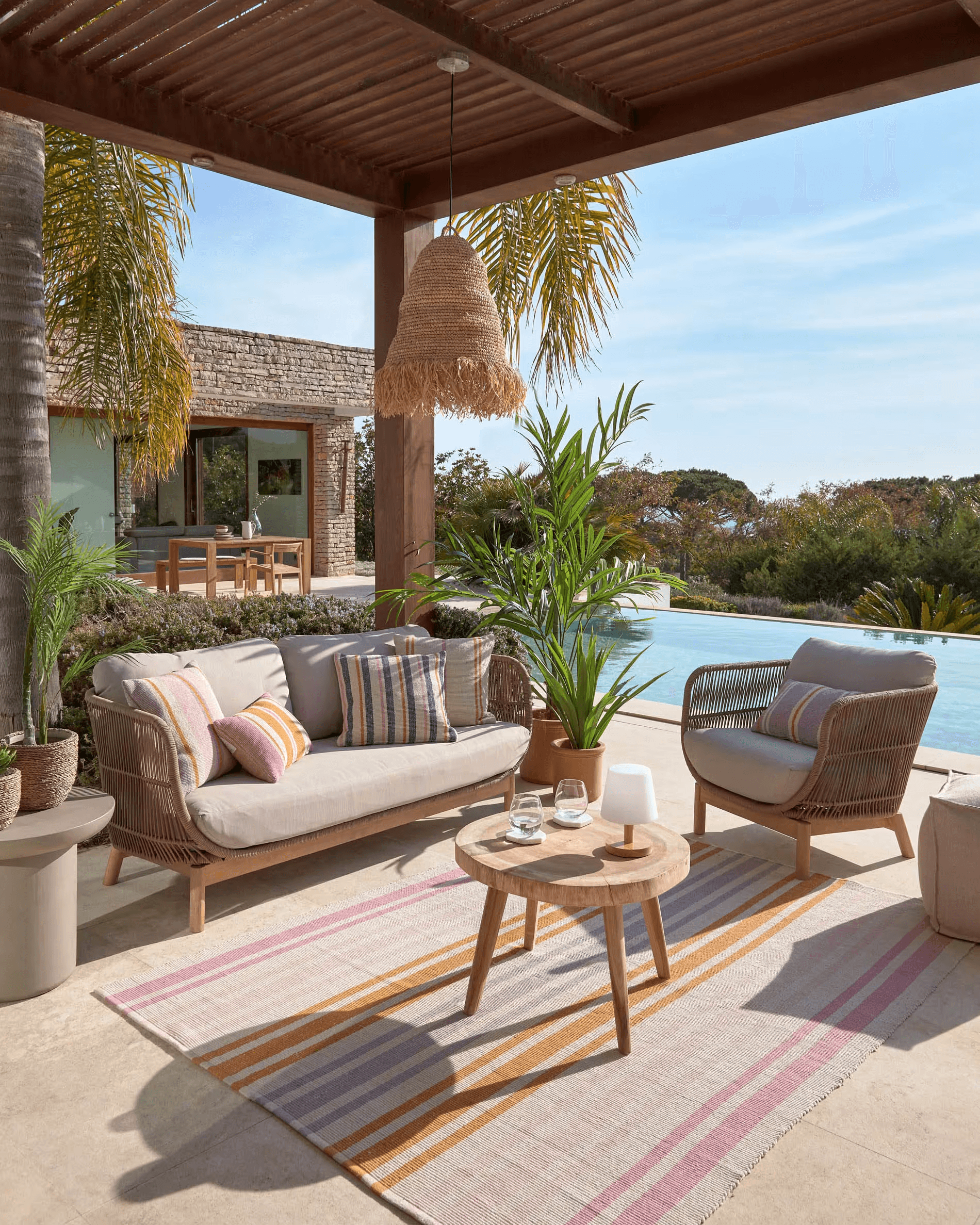 Abnehmbare Bezüge sind eine praktische Lösung, die es ermöglicht, die Couch in makellosem Zustand zu halten, selbst bei unvorhersehbaren Wetterbedingungen. Das für die Herstellung der Couch verwendete Akazienholz trägt das FSC™-Zertifikat, was für das Umweltbewusstsein und das Engagement für nachhaltige und kontrollierte Abholzung steht.