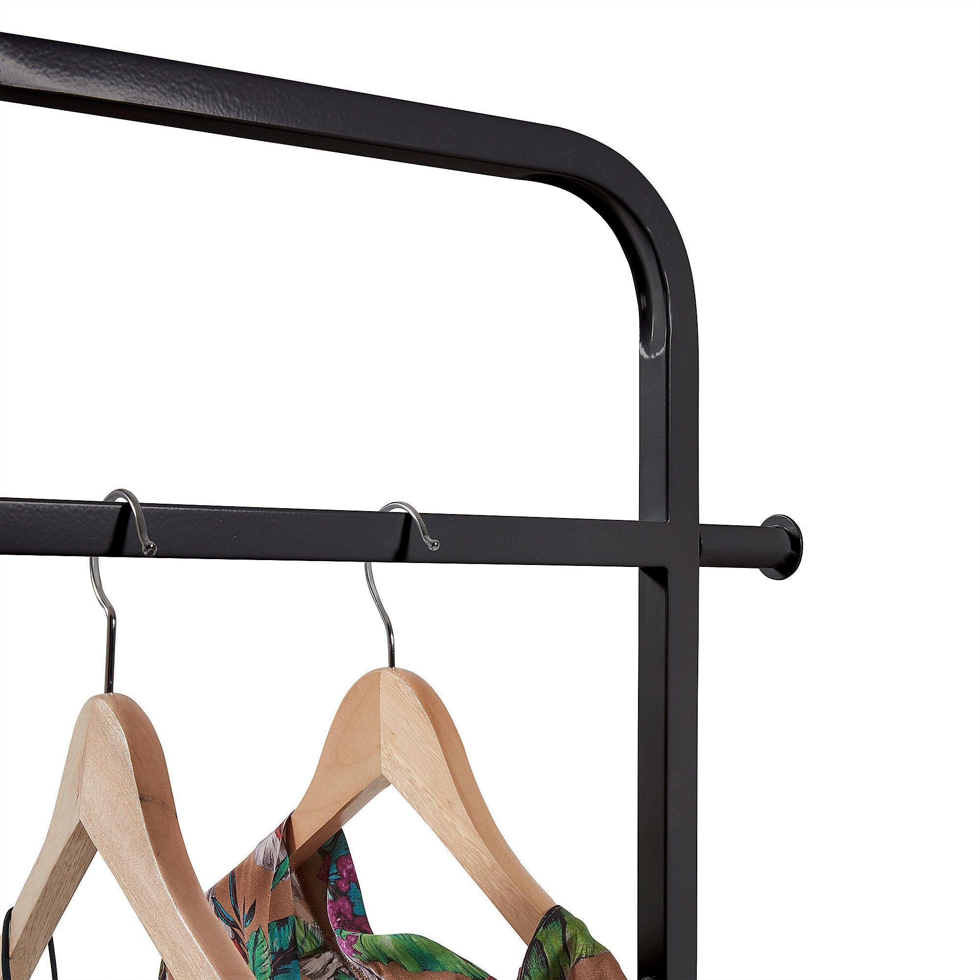 Das schwarze Regal des Celse -Kleiderbügels ist nicht nur eine praktische Ergänzung, sondern auch ein elegantes Element, das dem Innenraum einen stilvollen Charakter verleiht. Dank dieses Kleiderbügels werden Ihre Kleidung und Schuhe schnell und einfach bestellt, sodass ein organisierter Raum das Haus betreten kann.