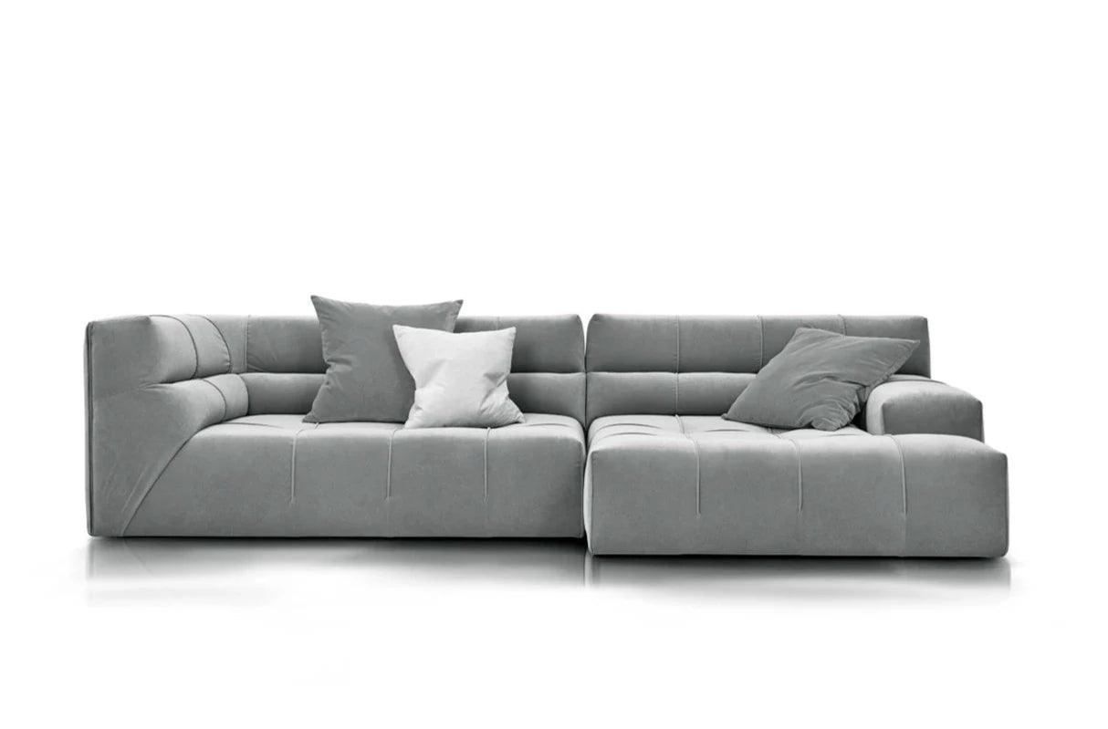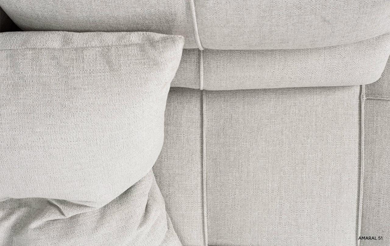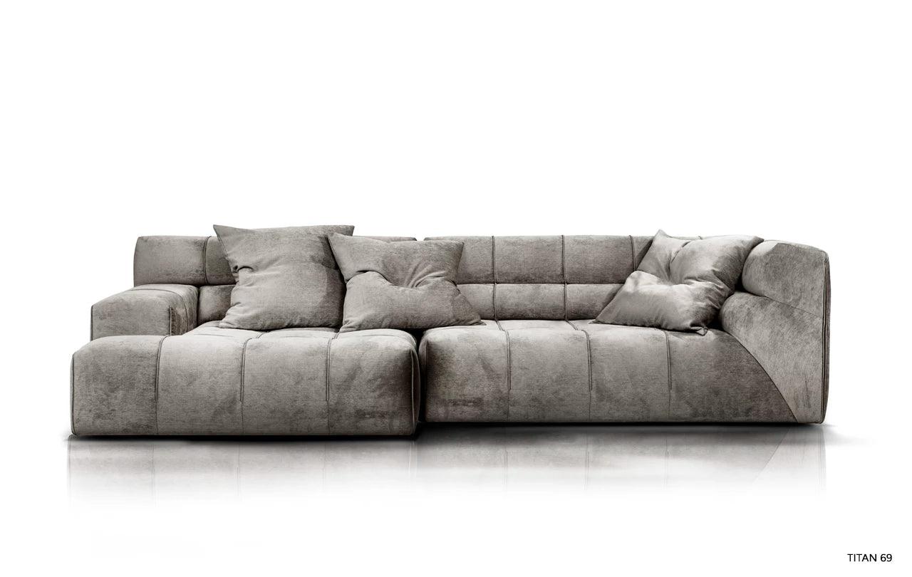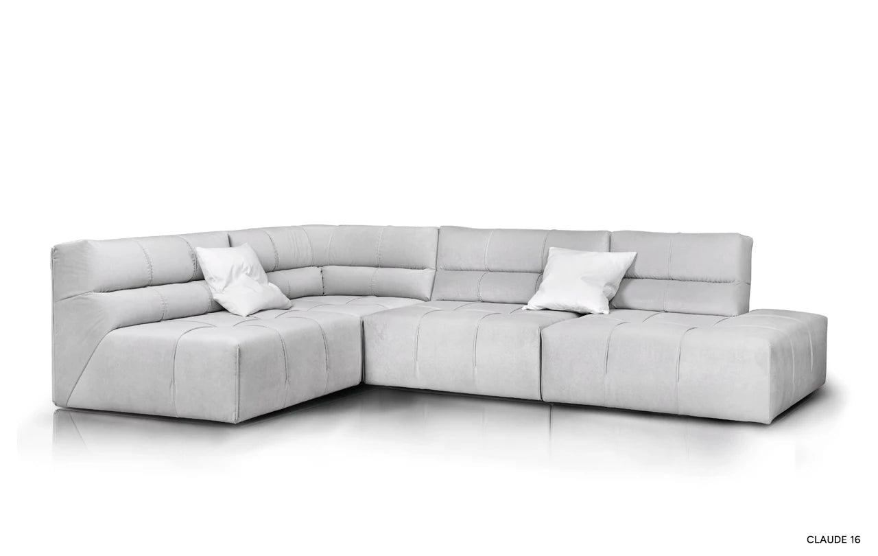 Eckcouch Chloe ist in verschiedenen Modulen erhältlich, was kreatives Kombinieren und die Schaffung personalisierter Arrangements gemäß den individuellen Vorlieben des Nutzers ermöglicht. Mit ihren linearen Formen erhält die Eckcouch eine zusätzliche Dimension durch das stilvolle Konstruktionsdetail – die elegante Naht.