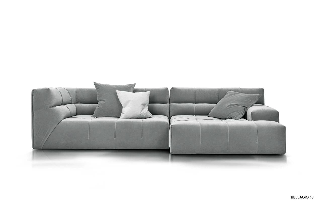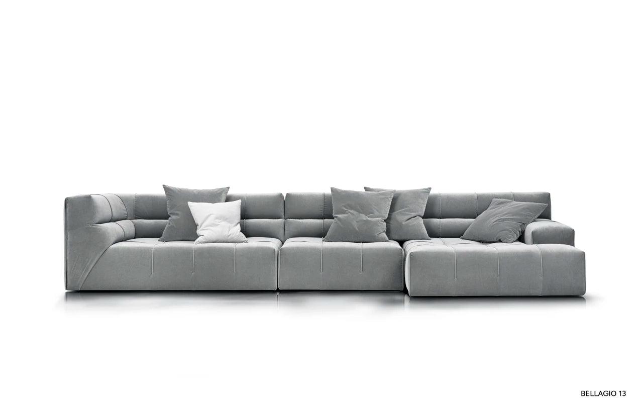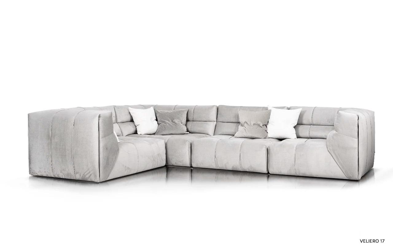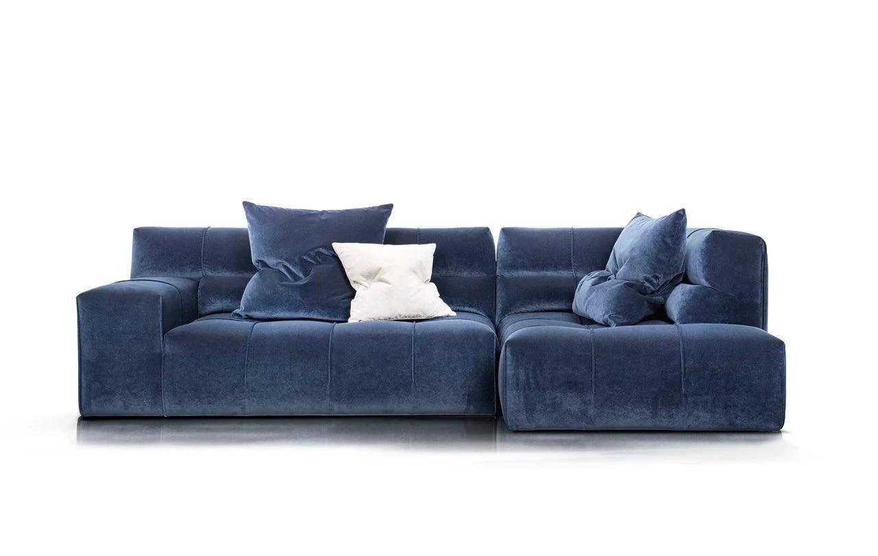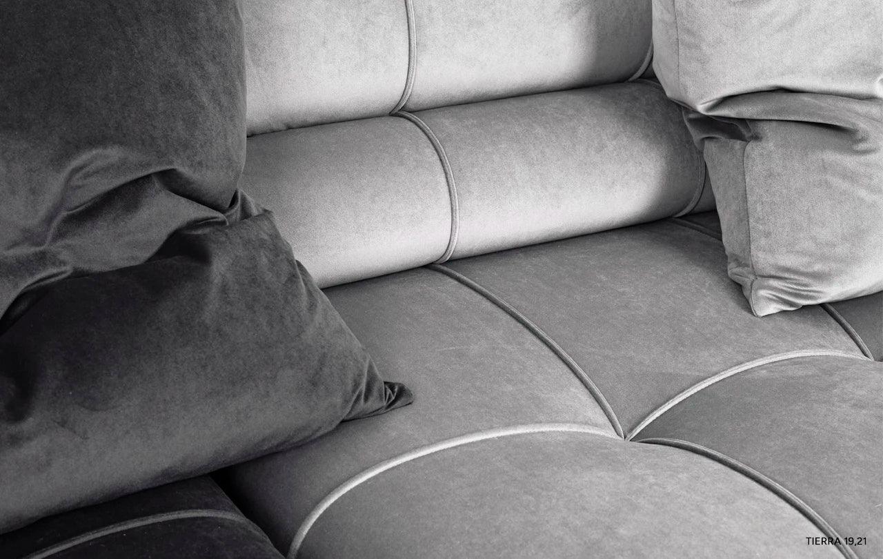 Eckcouch Chloe ist in verschiedenen Modulen erhältlich, was kreatives Kombinieren und die Schaffung personalisierter Arrangements gemäß den individuellen Vorlieben des Nutzers ermöglicht. Mit ihren linearen Formen erhält die Eckcouch eine zusätzliche Dimension durch das stilvolle Konstruktionsdetail – die elegante Naht.
