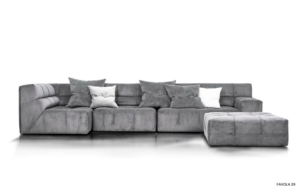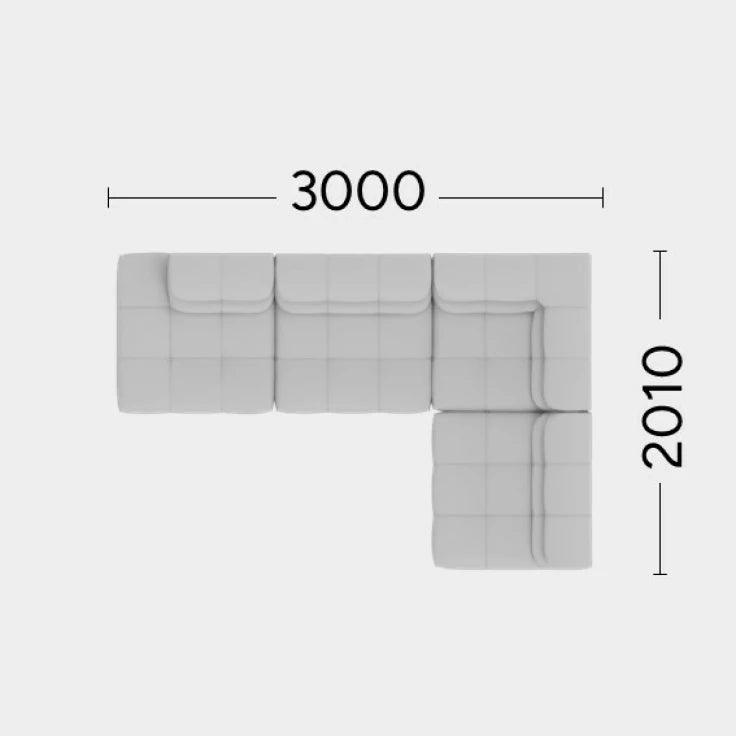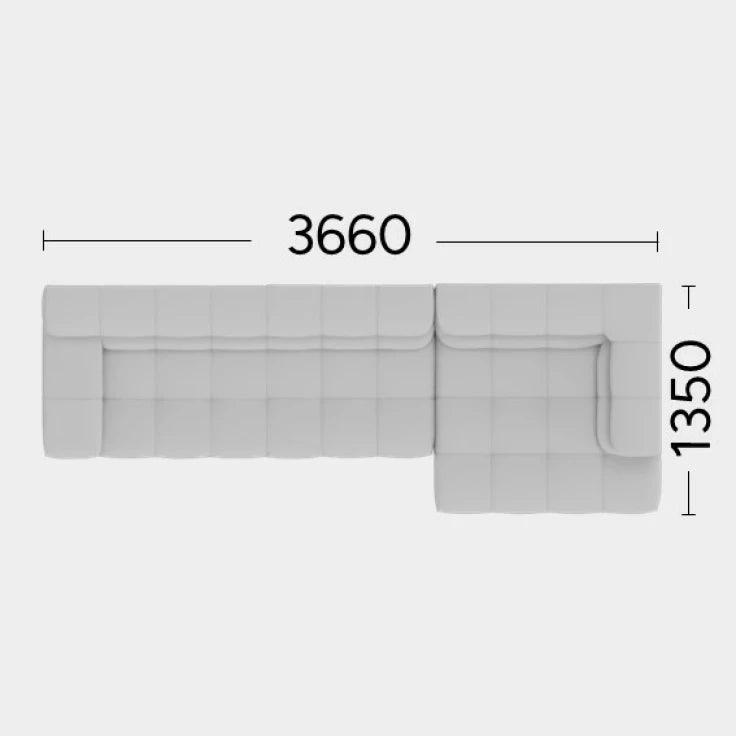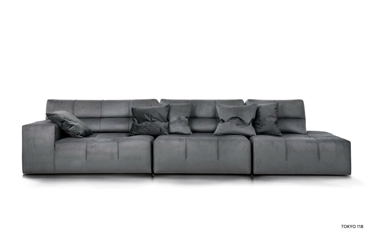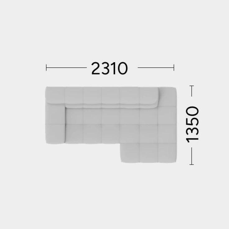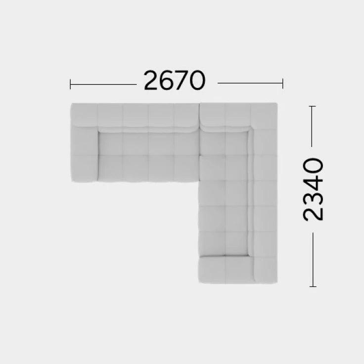 Eckcouch Chloe ist in verschiedenen Modulen erhältlich, was kreatives Kombinieren und die Schaffung personalisierter Arrangements gemäß den individuellen Vorlieben des Nutzers ermöglicht. Mit ihren linearen Formen erhält die Eckcouch eine zusätzliche Dimension durch das stilvolle Konstruktionsdetail – die elegante Naht.