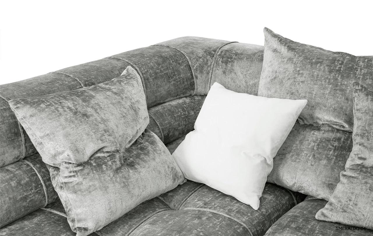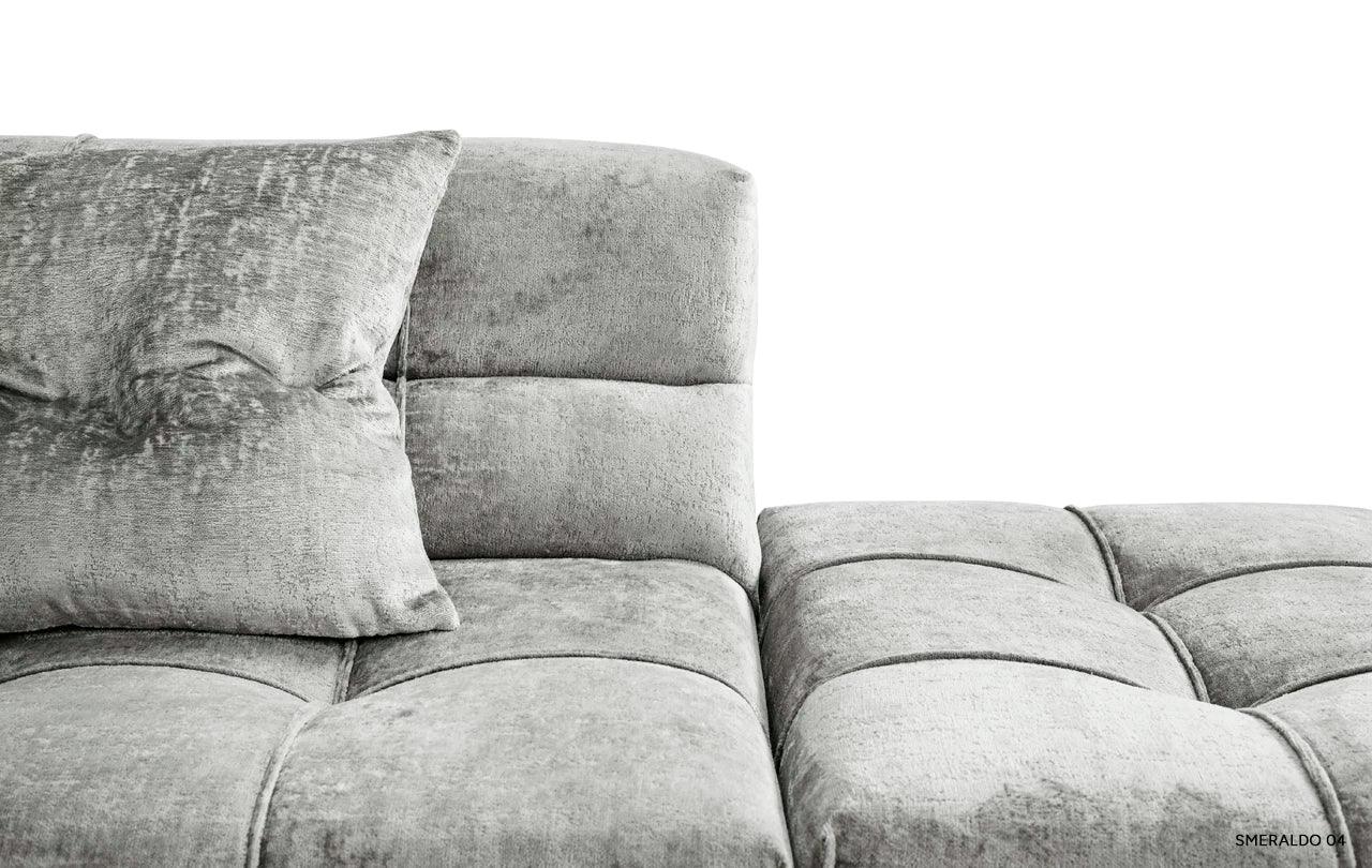Jedes Modul der Eckcouch enthält ein angenehmes Kissen mit den Maßen 70 x 70 cm, gefüllt mit hochwertiger Daune. Dies garantiert nicht nur ein ästhetisches Erscheinungsbild, sondern auch unvergleichlichen Komfort bei der Nutzung des Möbels.Elegante rechtsseitige Eckcouch Chloe vereint Funktionalität, Design und luxuriöse Verarbeitung und schafft einen perfekten Rückzugsort für die anspruchsvollsten Kunden.