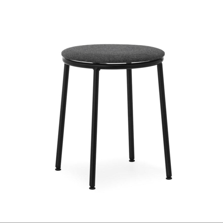 Hocker Circa ist die Quintessenz klassischen Minimalismus, entworfen mit Blick auf Langlebigkeit und Zeitlosigkeit. Seine runde Sitzfläche mit glatten, abgerundeten Kanten ruht auf einem soliden Gestell aus pulverbeschichtetem schwarzem Stahl. Das charakteristische Motiv des Kreises, von dem die Serie ihren Namen ableitet, zieht sich durch das gesamte Design – von der Form der Sitzfläche über die abgerundete Fußstütze bis hin zu dem praktischen Loch in der Mitte der Sitzfläche, das das Tragen des Hockers erleichtert.