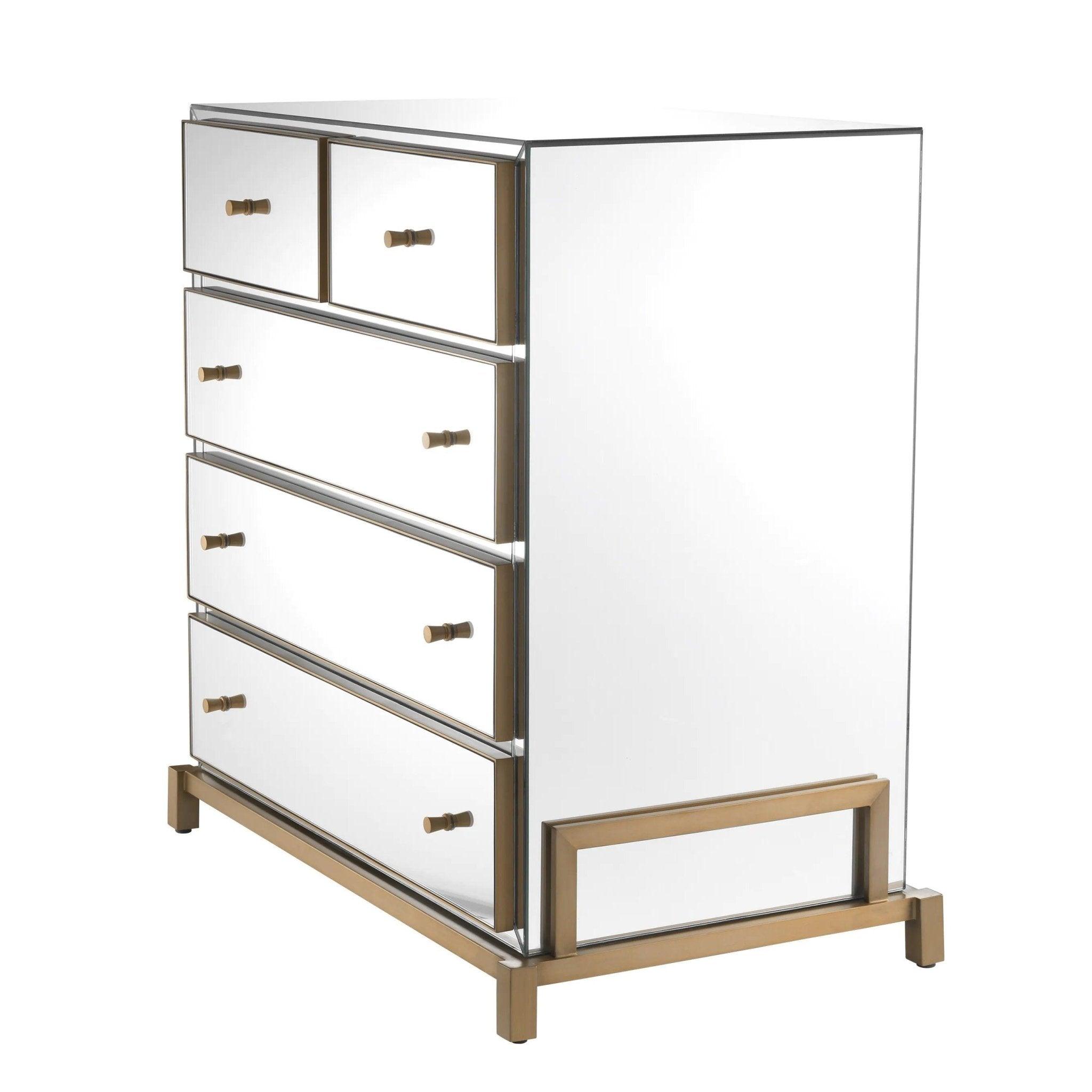 Stellen Sie dank der Clarington Mirror Dresser mit einem Messing -Finish einen glänzenden Akzent und Funktionalität in Ihr Schlafzimmer ein. Das elegante Kommode Er bietet nicht nur Platz für die Aufbewahrung von Kleidung, Bettwäsche und Accessoires, sondern bringt auch Helligkeit und Frische in den Raum.