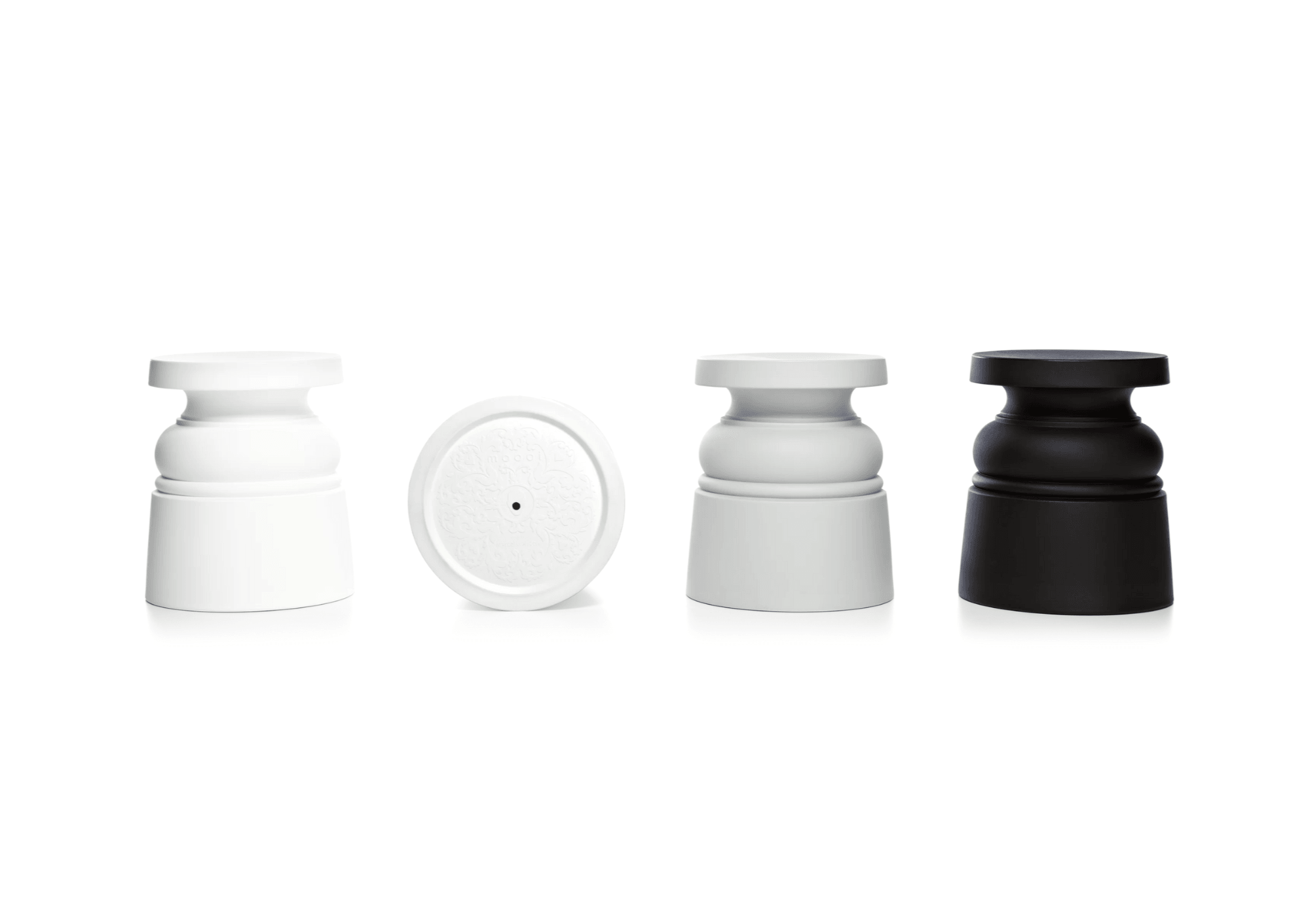 Hocker Der Container ist in drei Farben erhältlich: Schwarz, Weiß und Grau sowie zwei Modelle, wodurch Sie eine breite Palette an Personalisierung und Anpassung an Ihren Stil und Ihre Vorlieben erhalten.