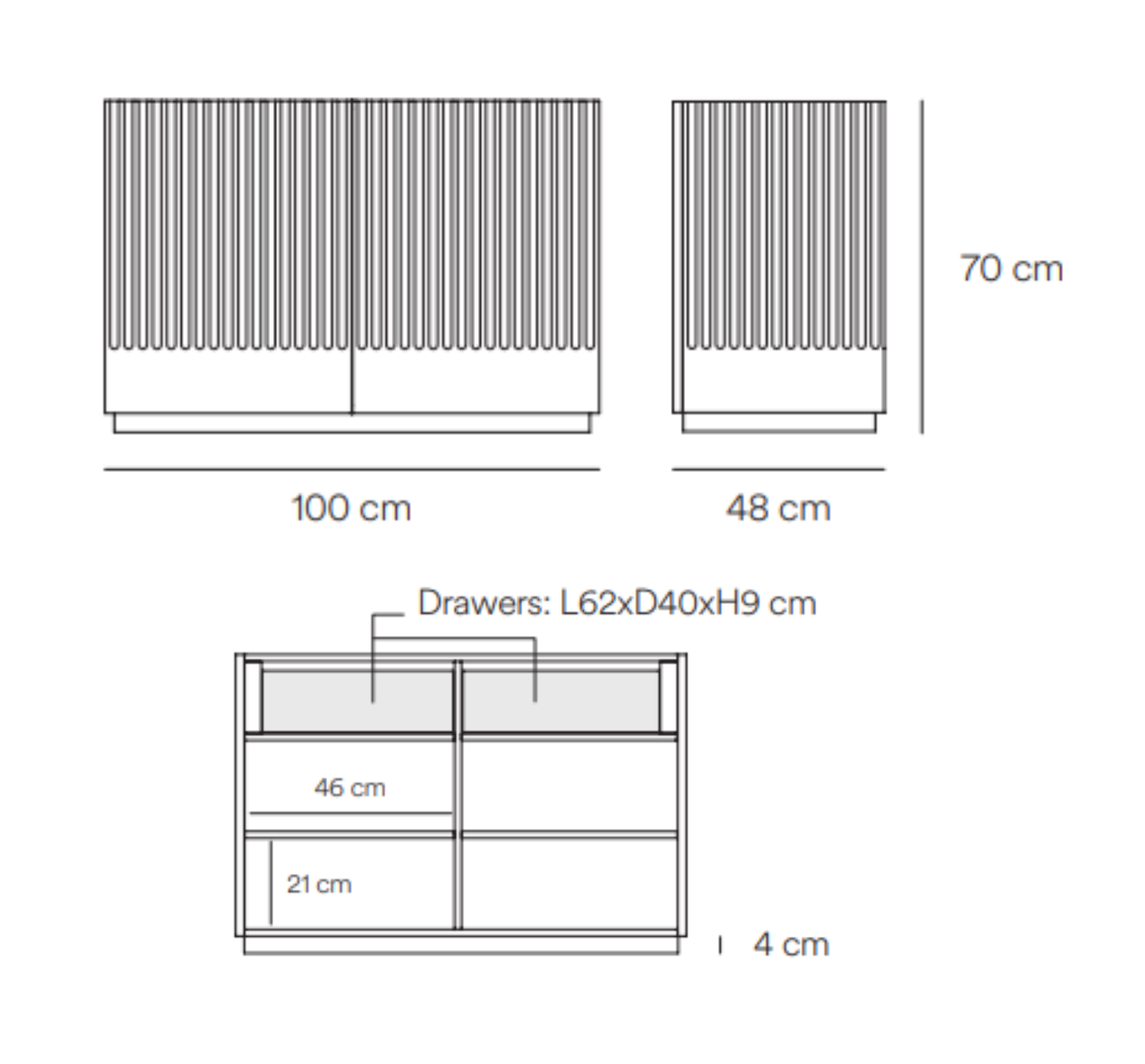 Vertikale Grooves auf der Oberfläche der Kommode erinnern sich an den Geist der klassischen griechischen Architektur, wo die Schönheit auf Proportionen und Prinzipien basiert. Vielen Dank Kommode Doric ist nicht nur ein funktionales Element der Ausrüstung, sondern auch eine einzigartige Innenausstattung, die die Eleganz und den Stil des Raumes betont.