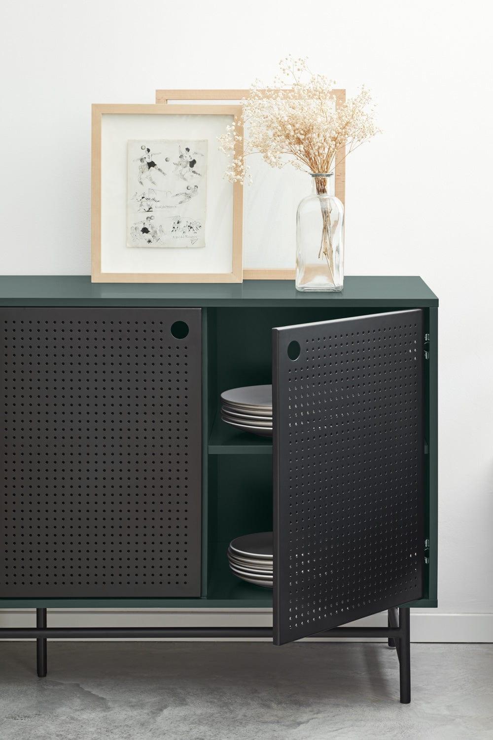 Kommode Punto ist die ideale Lösung für alle Liebhaber der Klassik, kombiniert mit einem Hauch von Nonchalance. Durch die Verwendung von perforiertem Metall hat Punto einen charakteristischen, loftartigen Charakter gewonnen. Die dunkelgrüne Farbe wärmt das gesamte Projekt erheblich und macht es einzigartig und gemütlich.