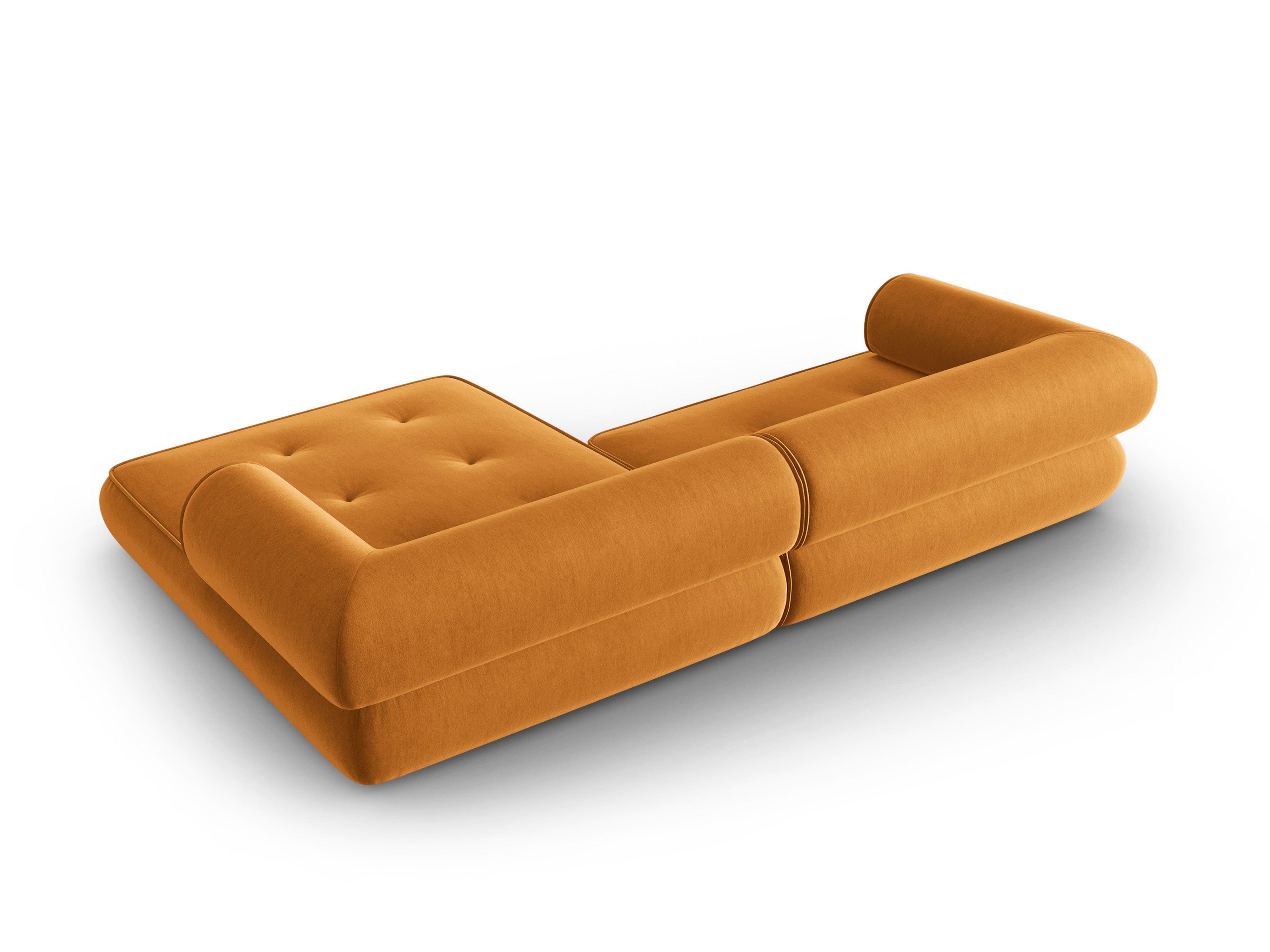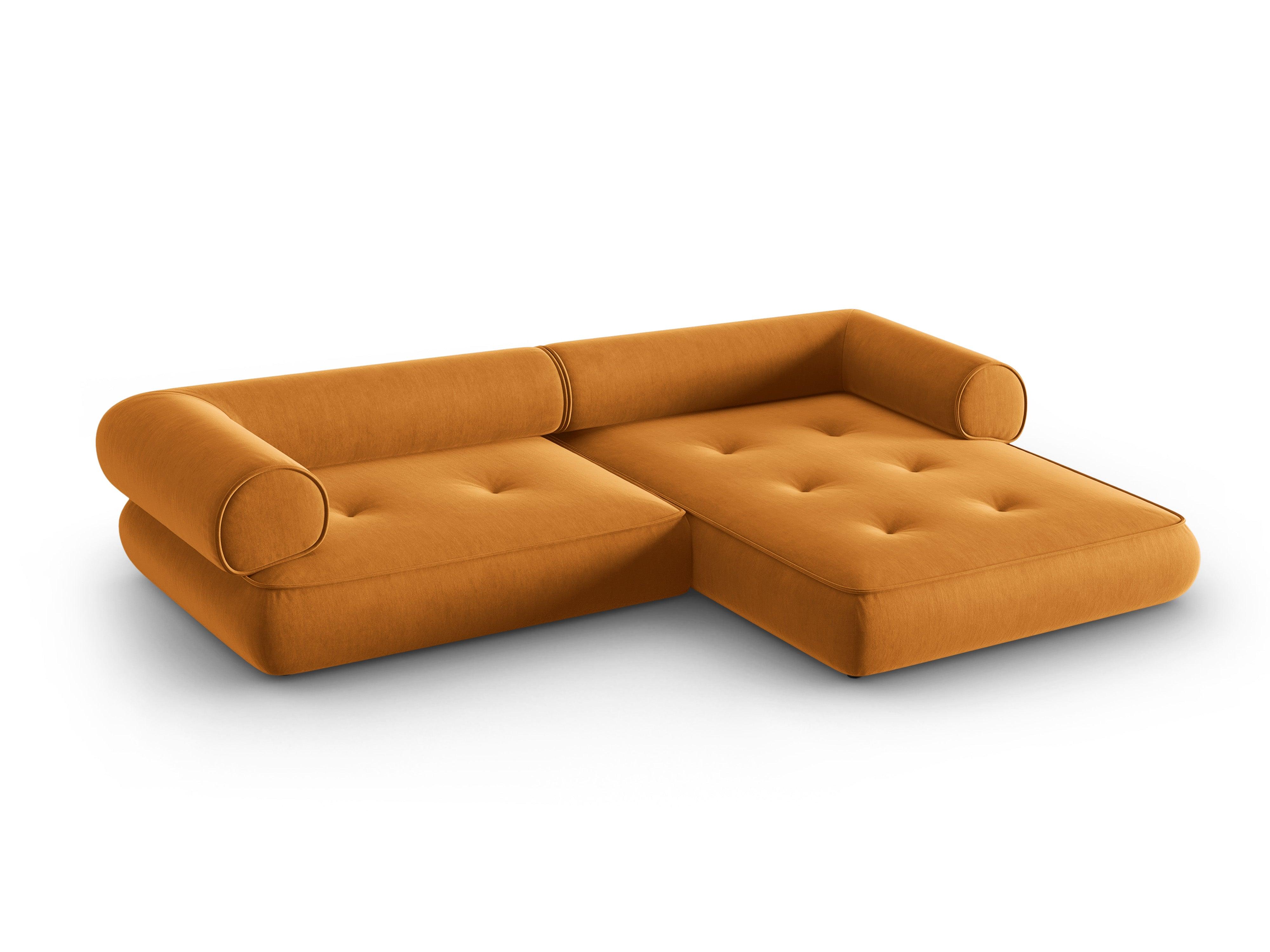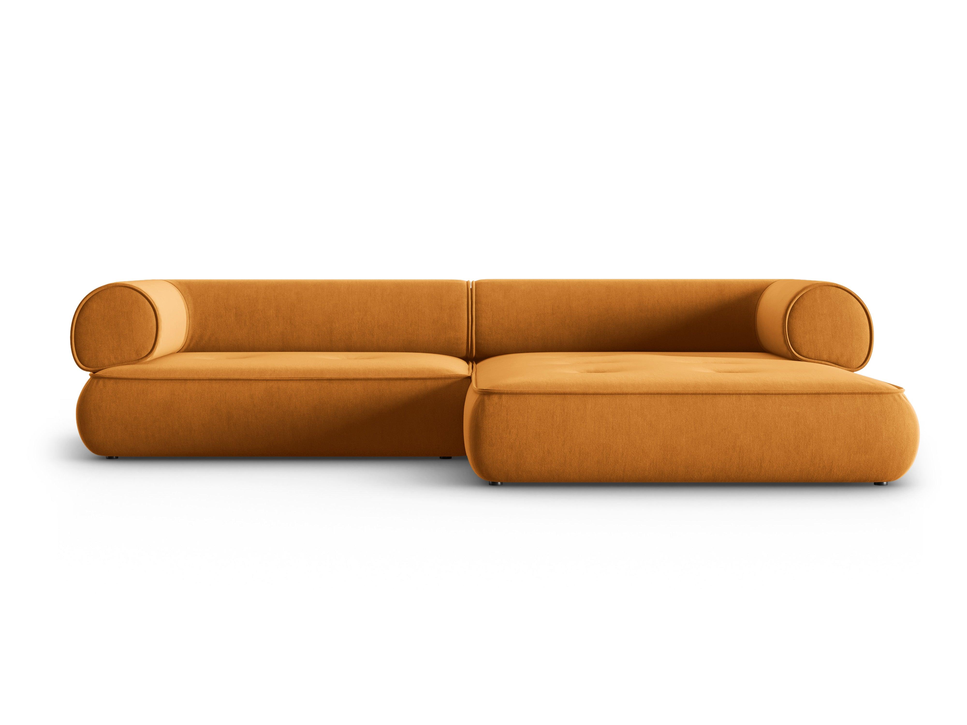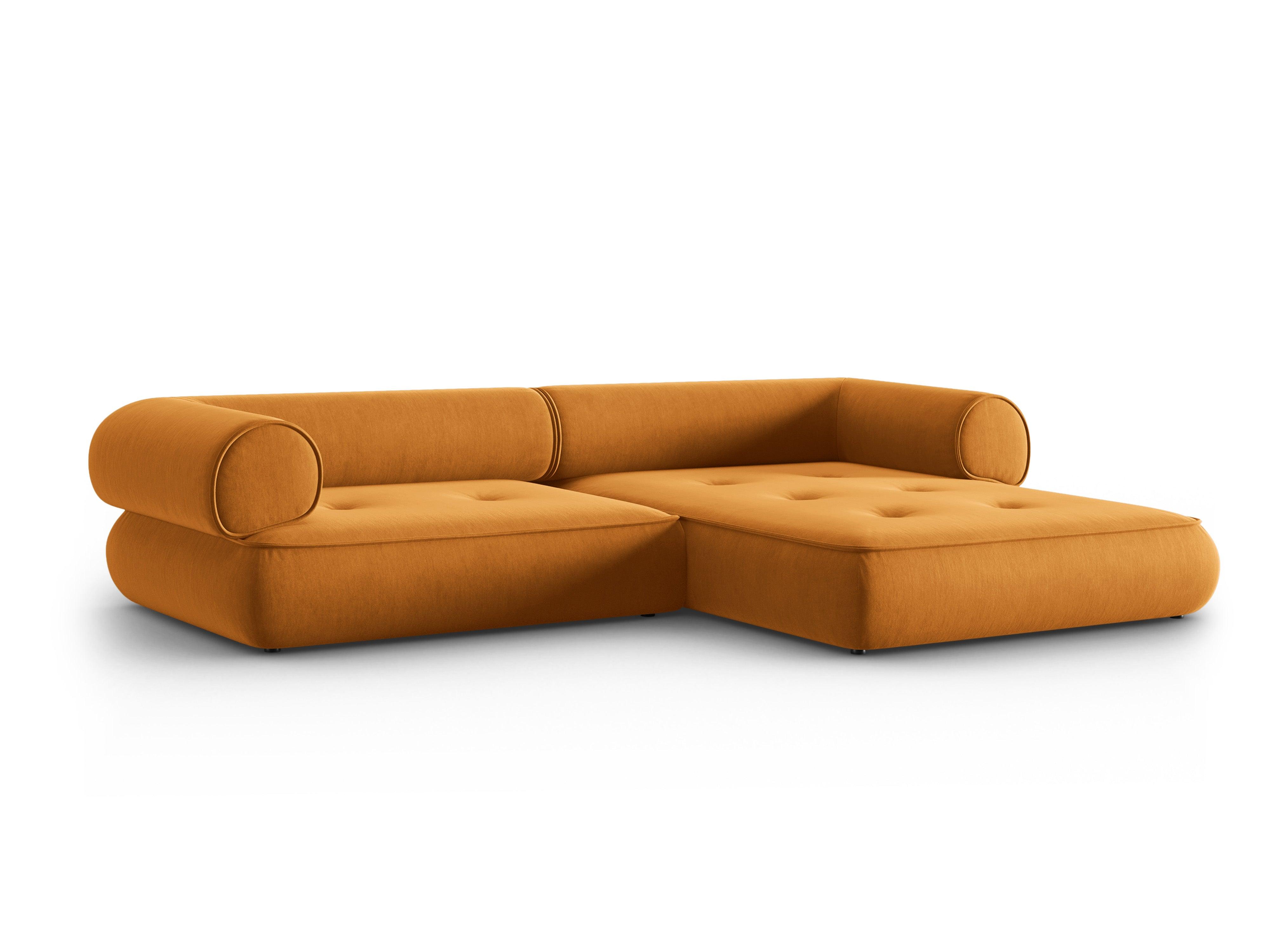 Stylischer Ecksofa Lily verleiht jedem Raum einen Hauch von zeitloser Eleganz. Die außergewöhnliche Form ist das Ergebnis eines modernen Ansatzes für zeitlose Möbelformen. Die abgerundeten Kanten der Sitzflächen haben eine äußerst originelle Form, und die Rückenlehnen bieten den richtigen Komfort während der Entspannung. Der Bezug aus Chenil-Stoff ist nicht nur praktisch, sondern auch angenehm im Griff.