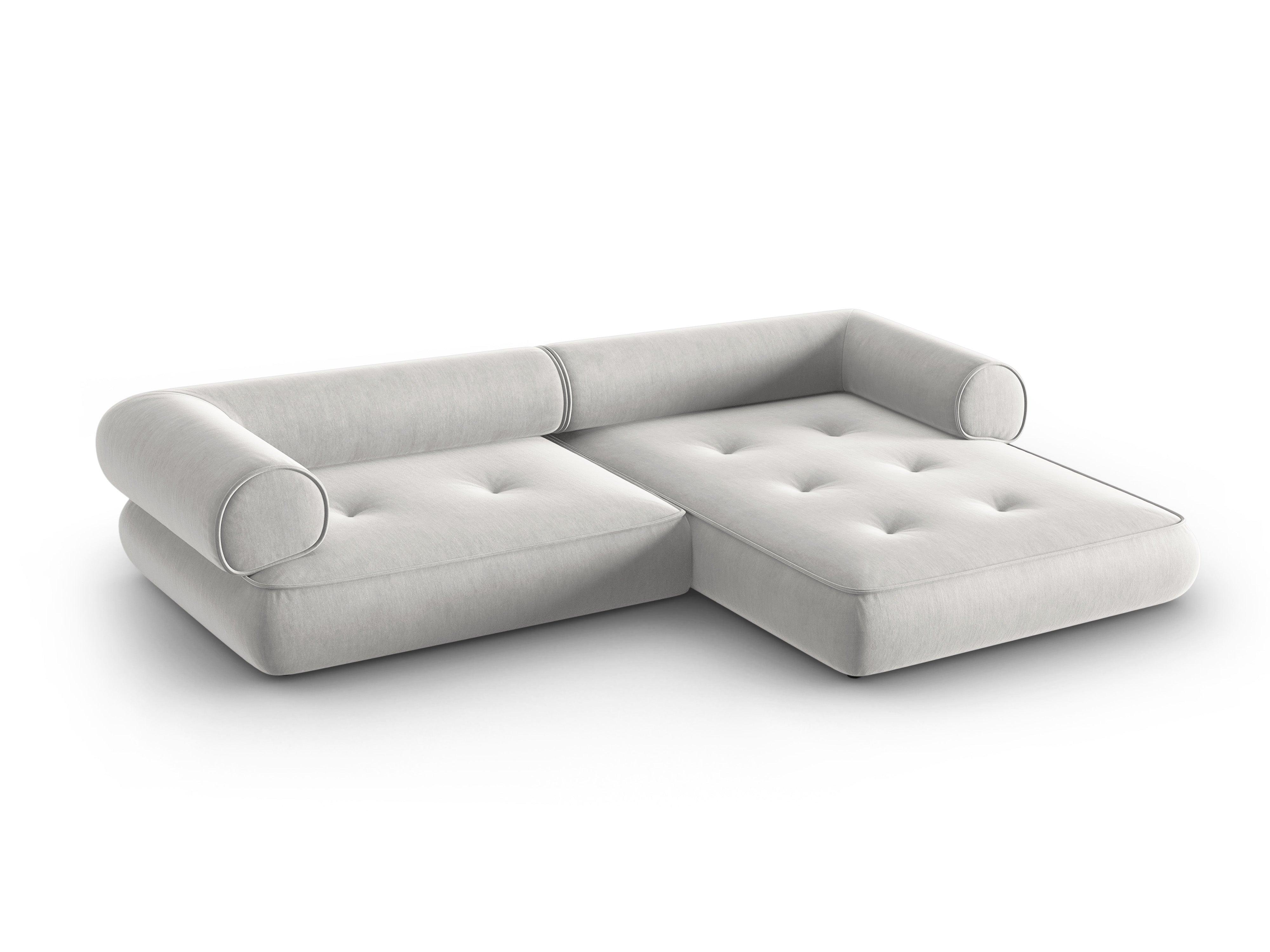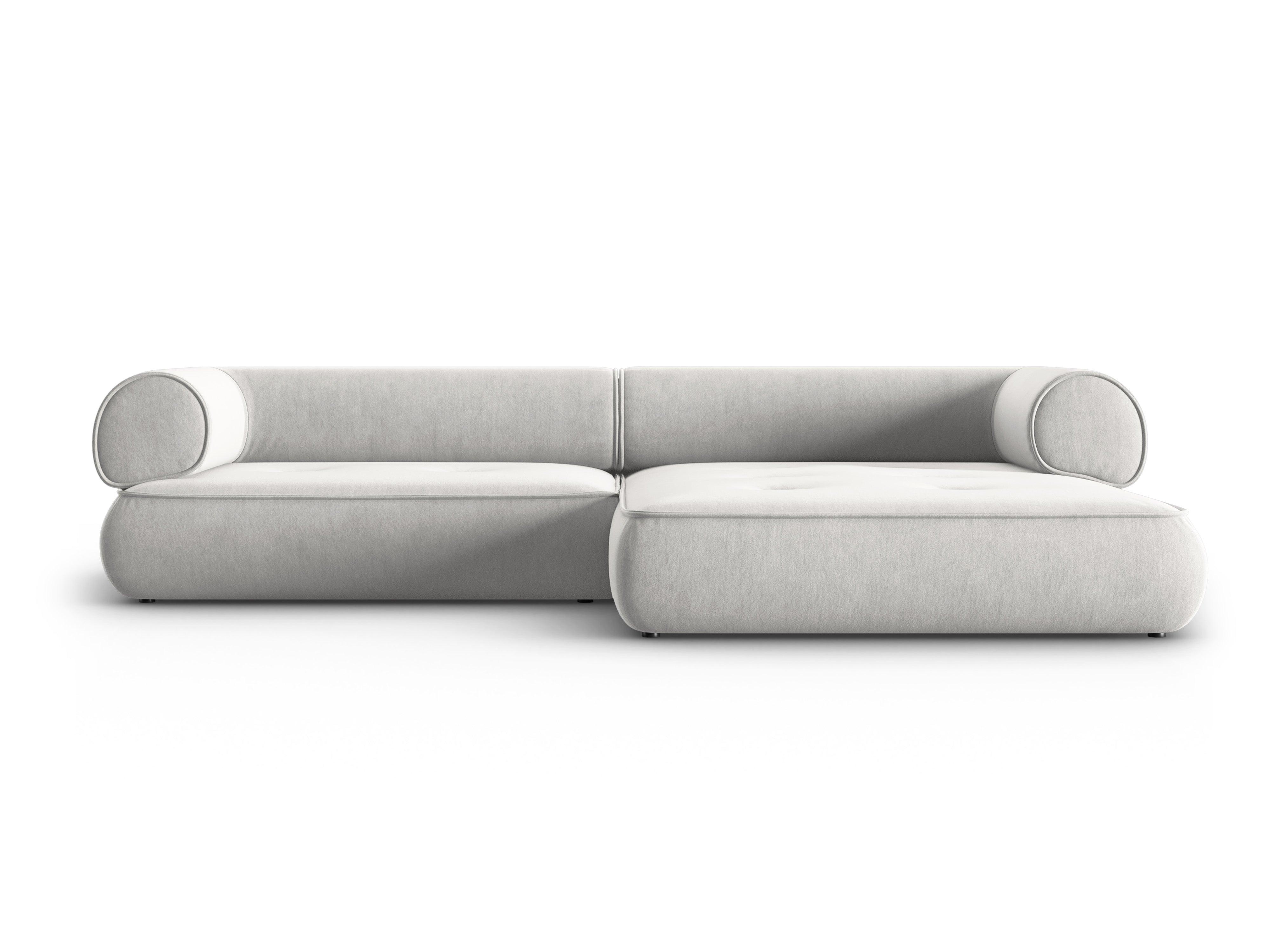 Der stilvolle Ecksofa Lily verleiht jedem Raum einen Hauch von zeitloser Eleganz. Die außergewöhnliche Form ist das Ergebnis eines modernen Ansatzes für zeitlose Möbelformen. Die abgerundeten Kanten der Sitzflächen haben eine äußerst originelle Form, und die Rückenlehnen bieten den nötigen Komfort beim Entspannen. Der Bezug aus Chenil-Stoff ist nicht nur praktisch, sondern auch angenehm im Griff.