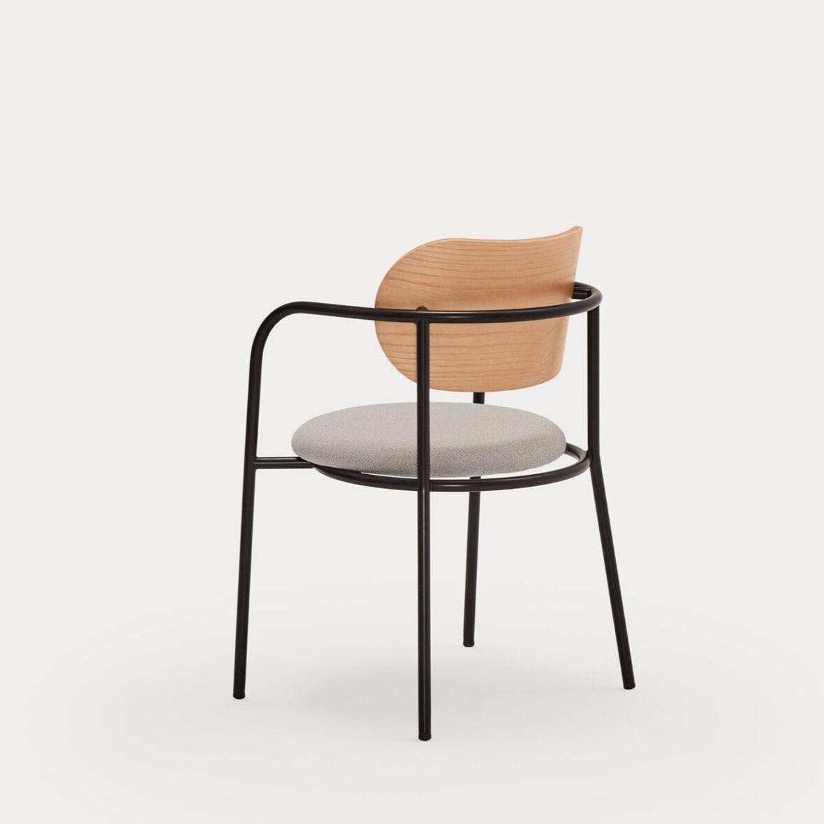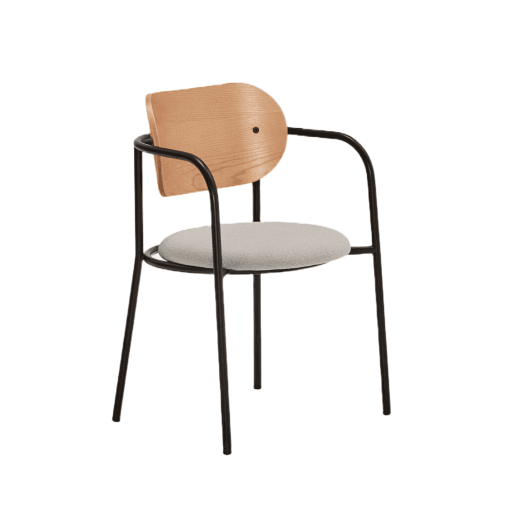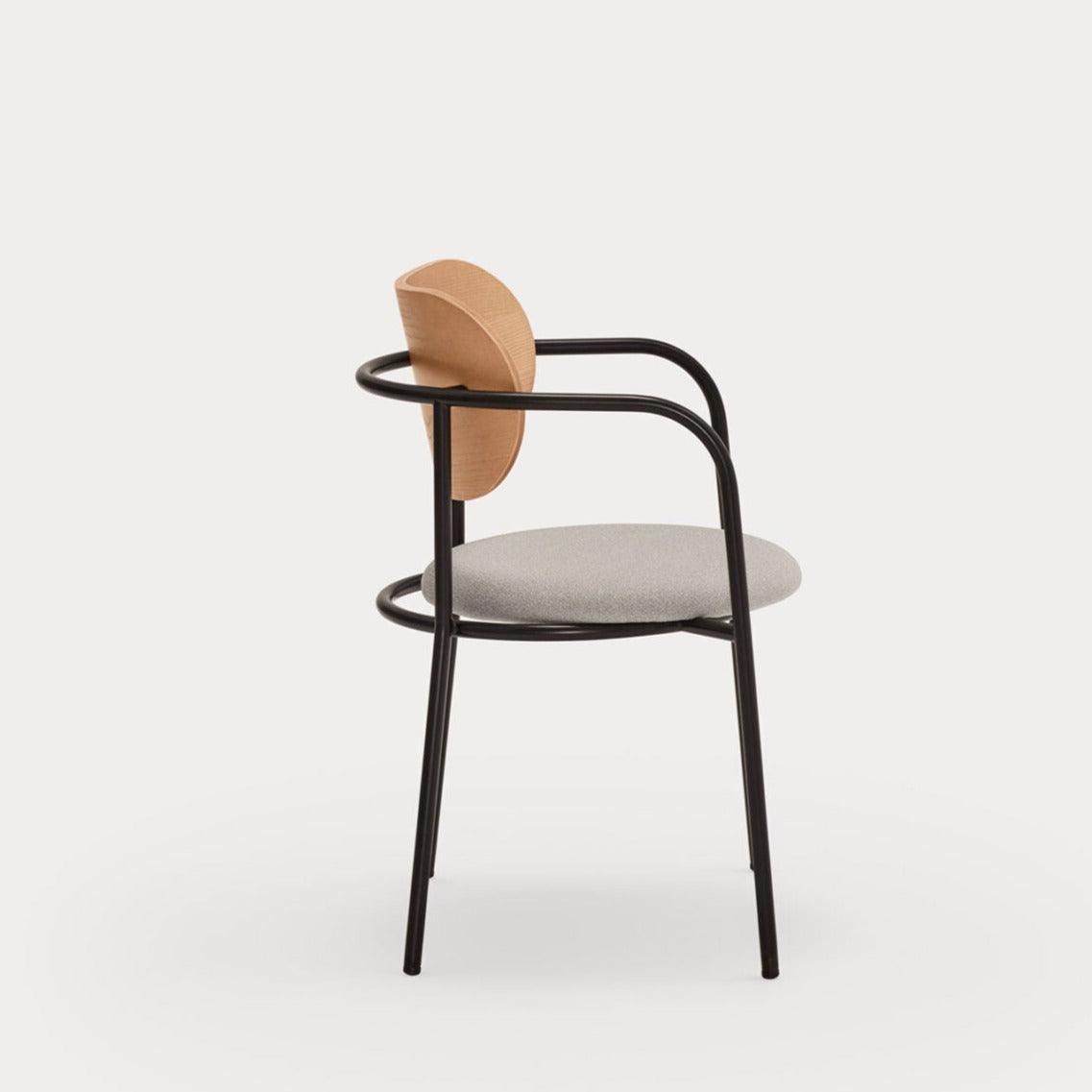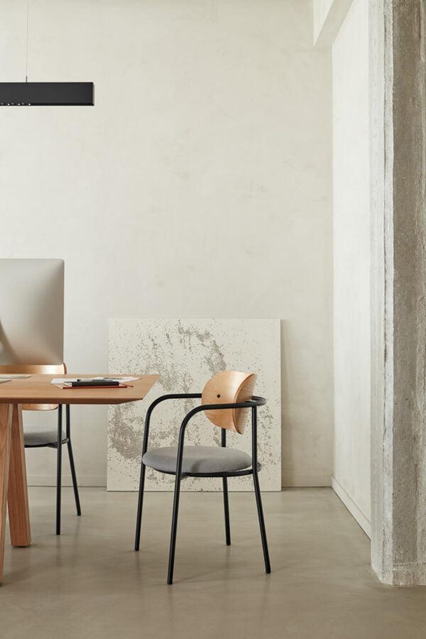 Stuhl Eclipse, wie der Name schon sagt, ist inspiriert von dem Phänomen der Finsternis. Die interessante Konstruktion, die aus einem gepolsterten Sitz und einer Holzlehne sowie einer Metallstruktur besteht, eignet sich perfekt für moderne Innenräume. Der einzigartige, minimalistische Stil dieses Designs zieht nicht nur die Aufmerksamkeit auf sich, sondern zeichnet sich auch durch eine hohe Funktionalität aus – Eclipse eignet sich hervorragend für das Esszimmer, das Wohnzimmer oder das Büro.