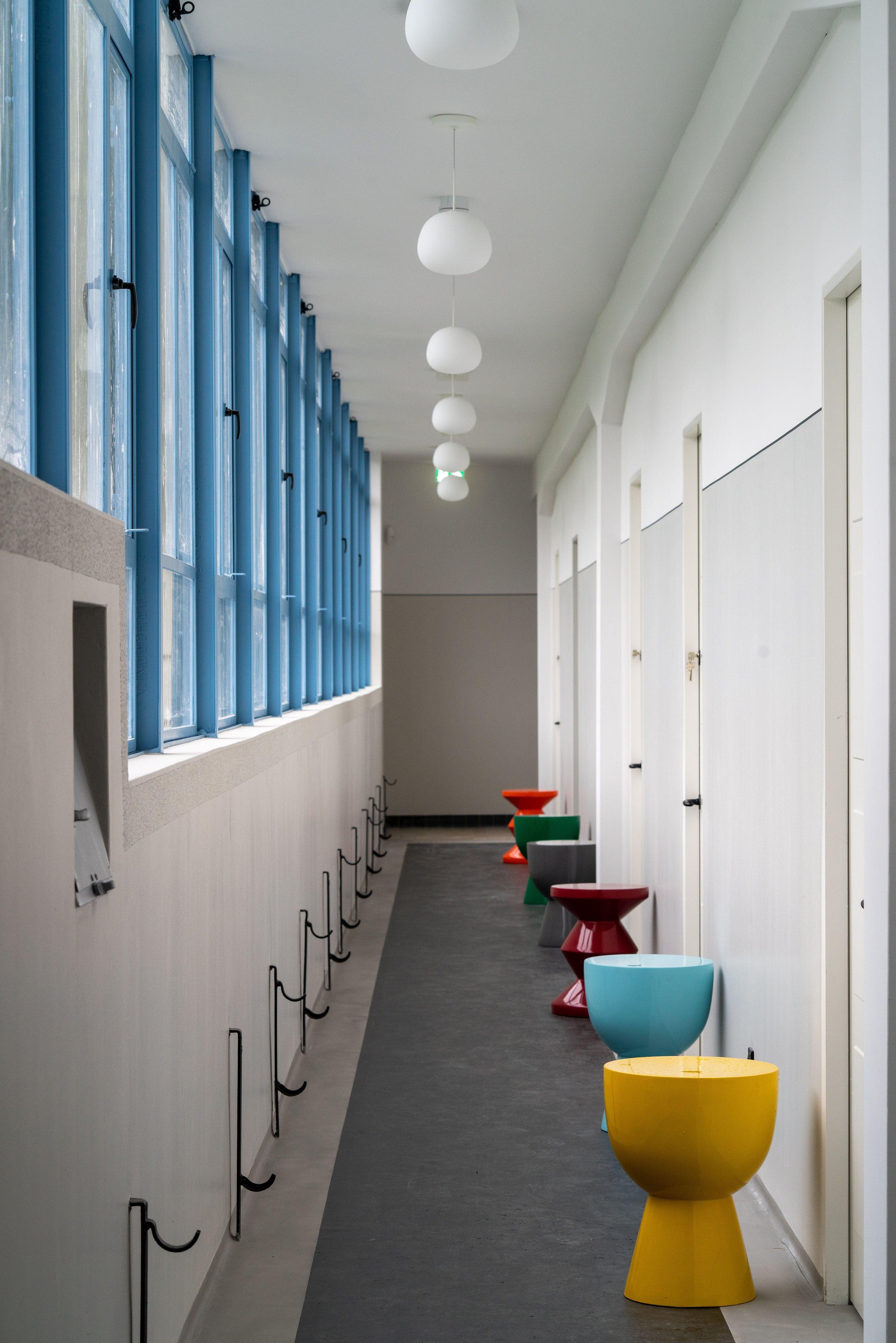 Ein hellblauer Stuhl dort