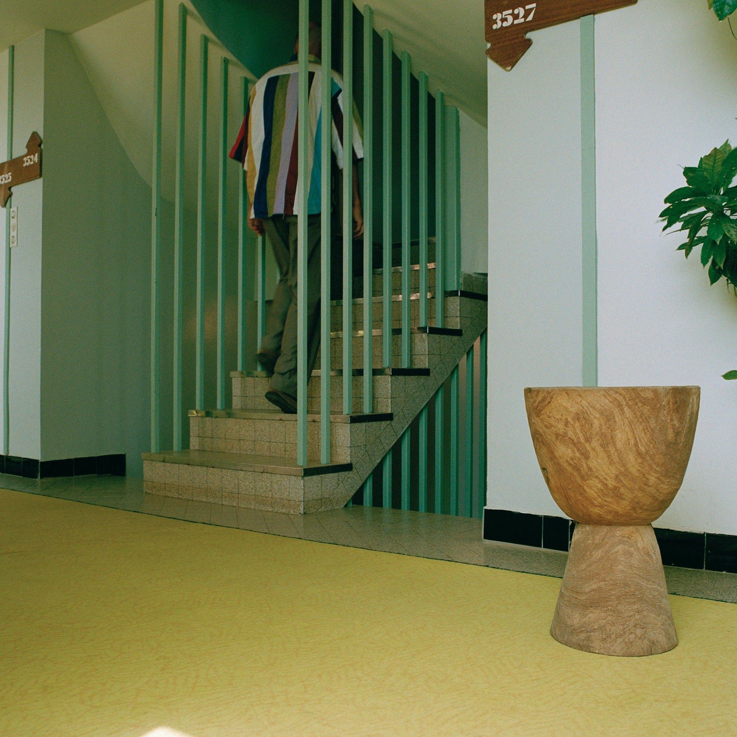 Ein Holzhocker dort