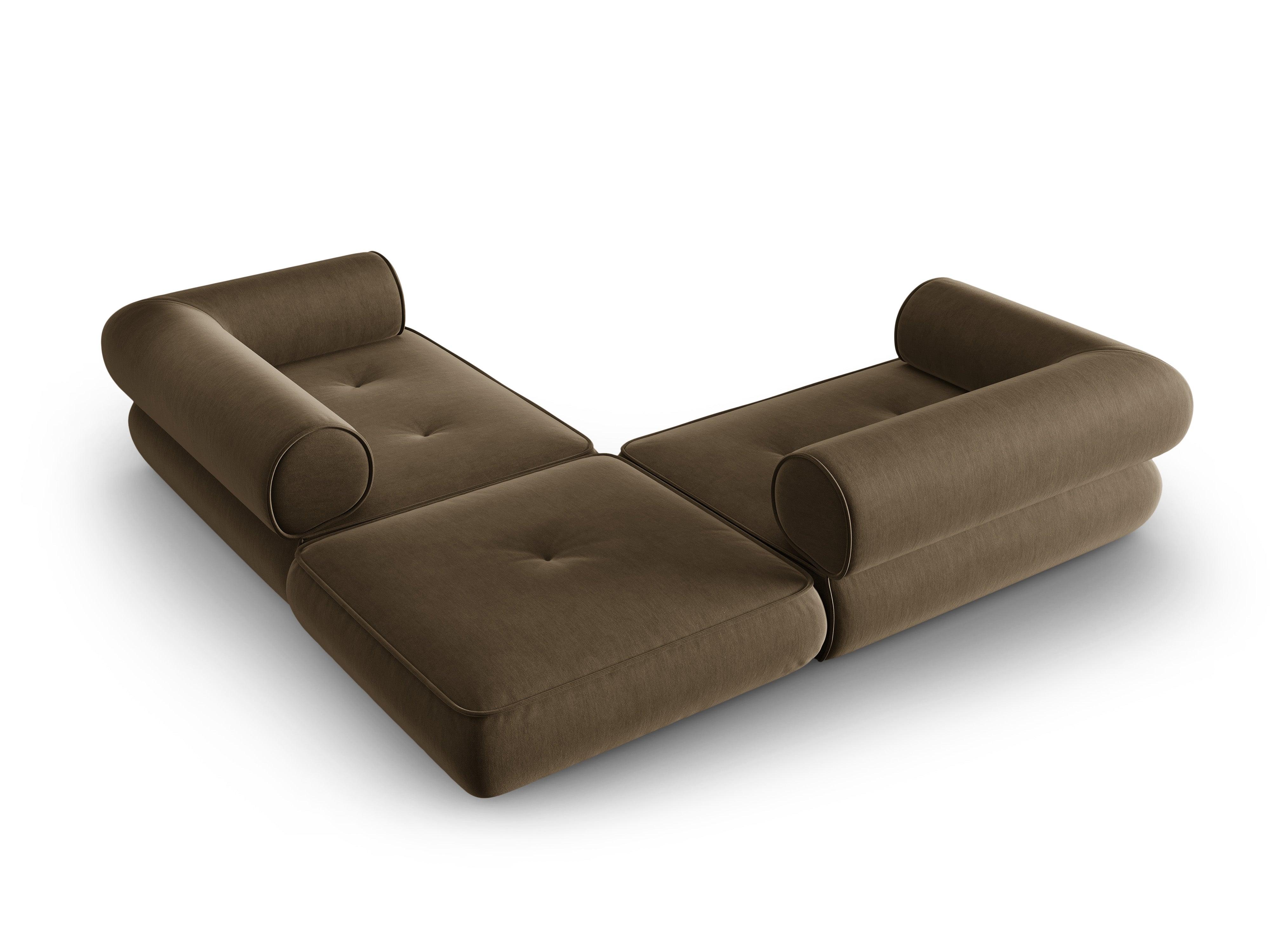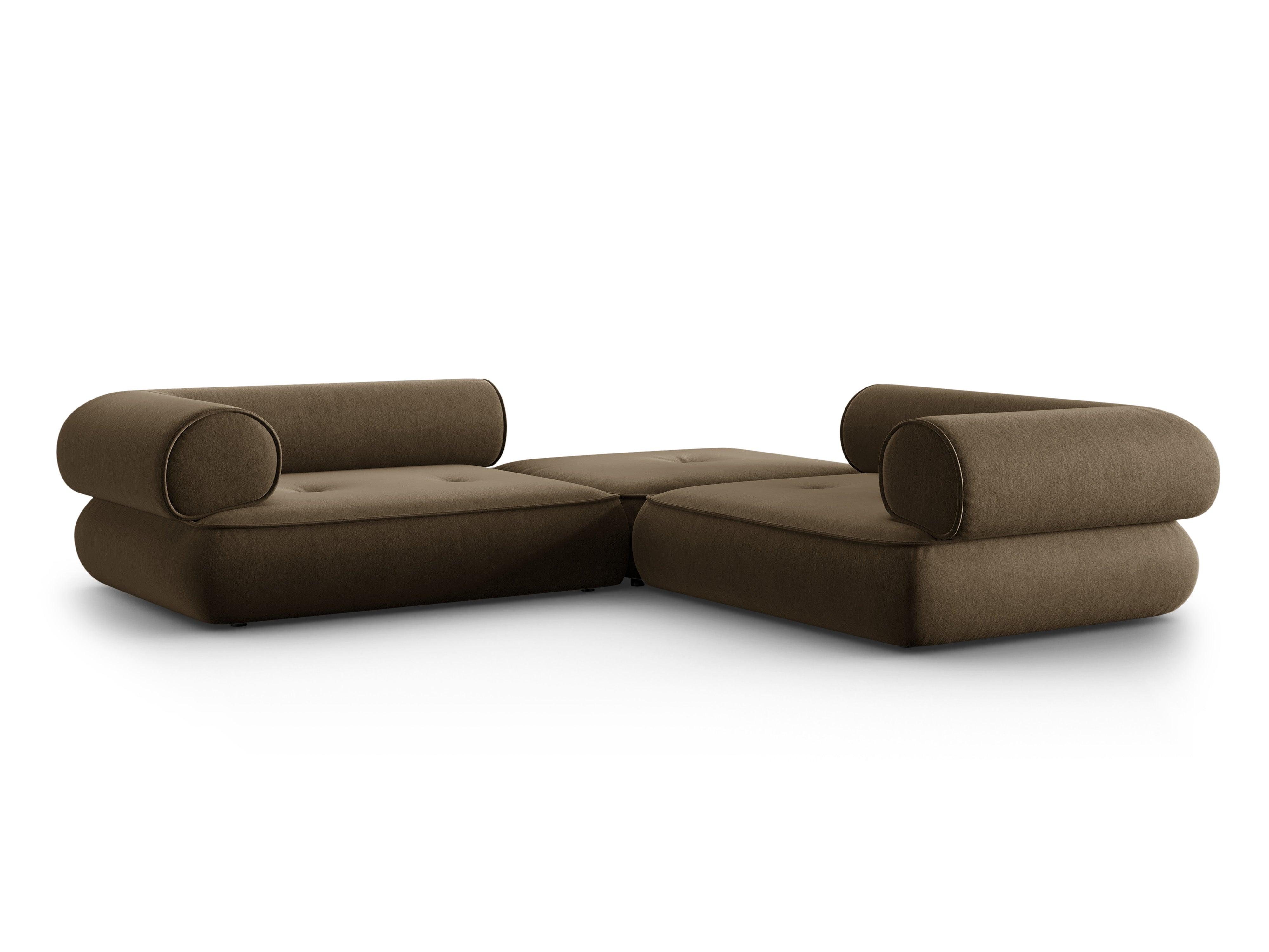 Der stilvolle Ecksofa Lily verleiht jedem Raum einen Hauch von zeitloser Eleganz. Die außergewöhnliche Form ist das Ergebnis eines modernen Ansatzes für zeitlose Möbelformen. Die abgerundeten Kanten der Sitzflächen haben eine äußerst originelle Form, und die Rückenlehnen bieten den richtigen Komfort während der Entspannung. Der Bezug aus Chenil-Stoff ist nicht nur praktisch, sondern auch angenehm im Griff.