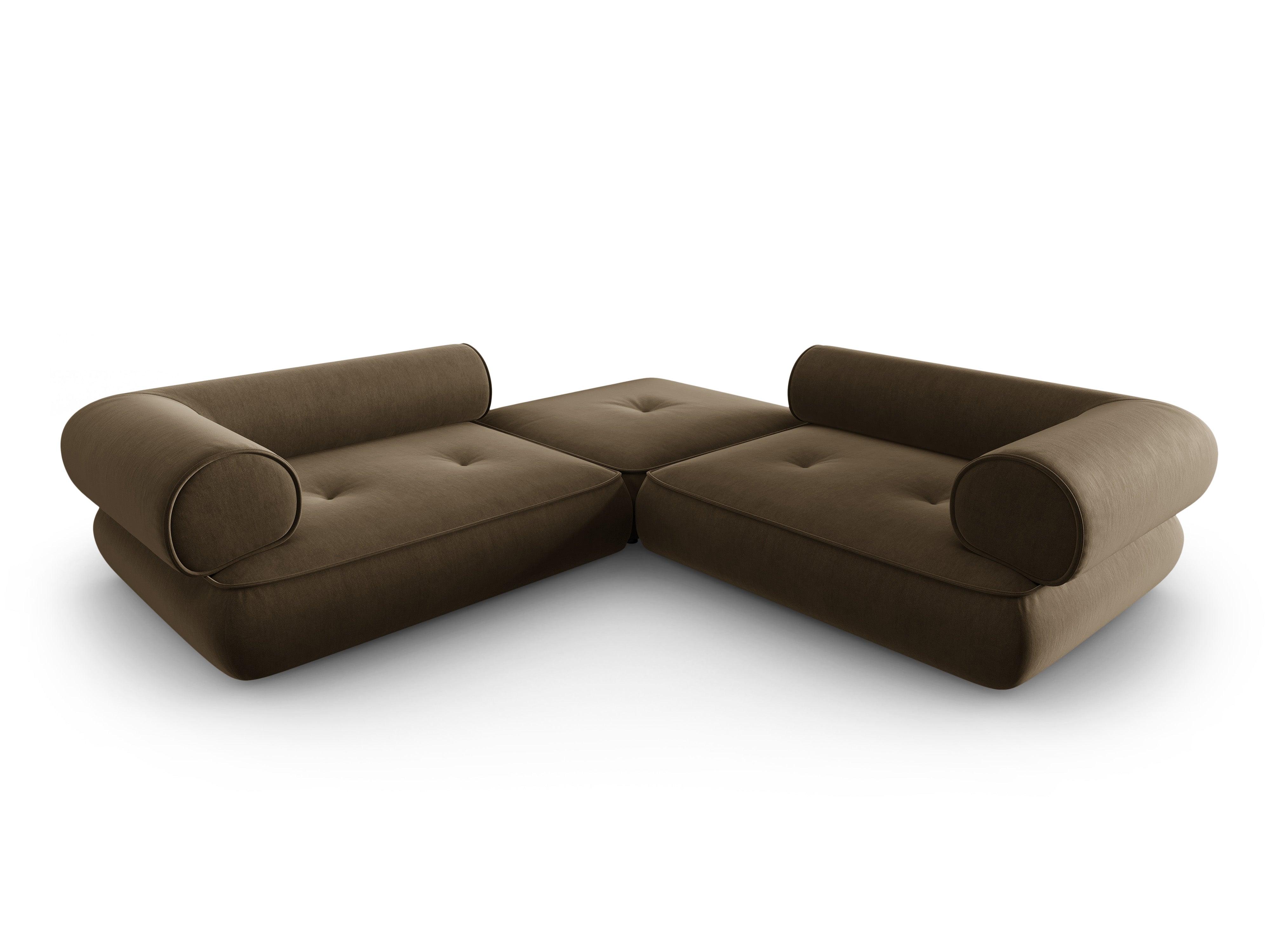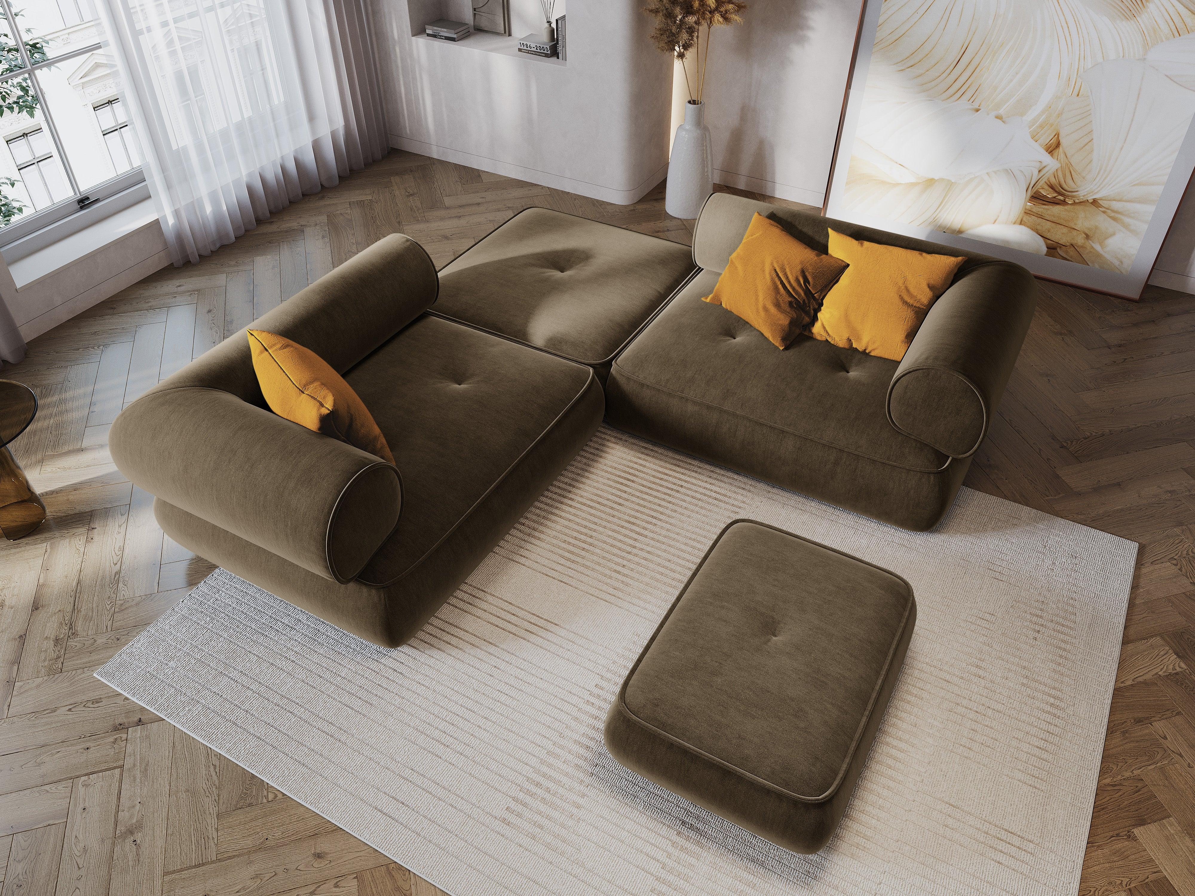 Die tiefen Sitzflächen sind elastisch und außergewöhnlich bequem. Zarte Steppungen und Nähte betonen den klassischen Charakter des Designs. Dank der niedrigen und breiten Silhouette bringt das Ecksofa Lily ein wenig Gemütlichkeit und Wärme in den Raum. In der Kollektion sind verschiedene Kombinationen von Sofas und Ecksofas sowie ein Chaiselongue und ein großer Pouf erhältlich, mit denen Sie eine einzigartige Einrichtung schaffen können.