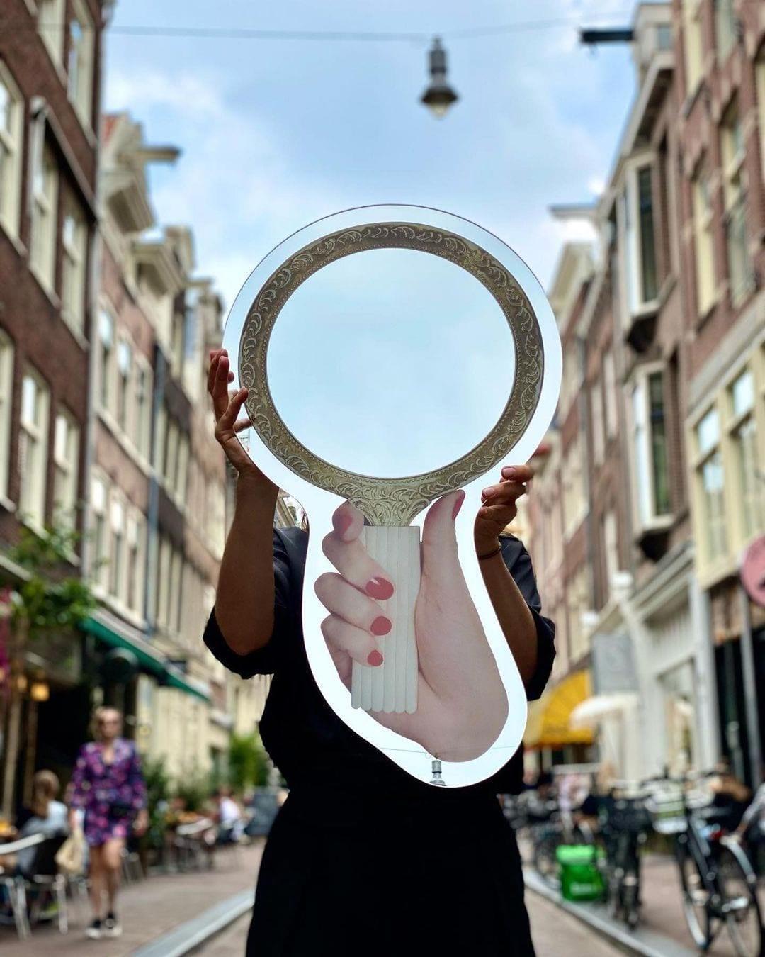 Einzigartiger Spiegel In dem goldenen Rahmen ist es Teil einer einzigartigen Sammlung, die vom italienischen König von Avant -Gärte Seletti und dem Toileletpaper -Magazin erstellt wurde. Interessante, leicht kontroverse Collage, Wie ein Tor zu einer anderen surrealen Dimension verleiht es dem Innenraum einen einzigartigen Charakter.