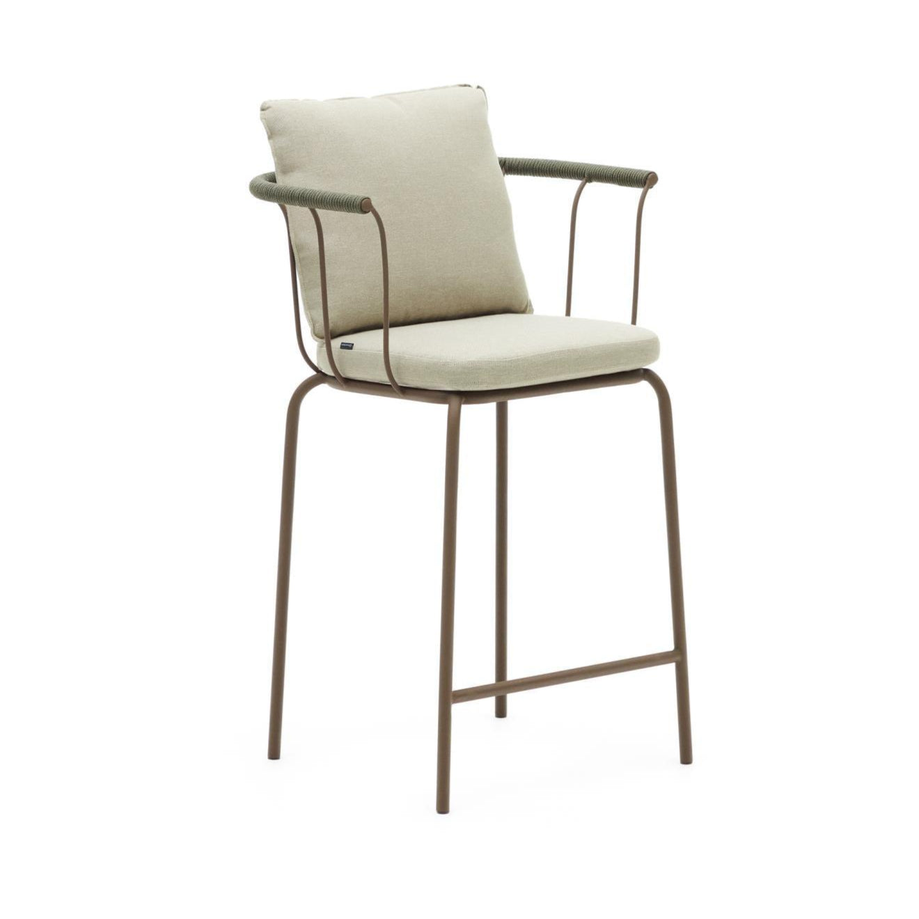 Gartenbarstuhl SALGUER mit grüner Schnur und braunem Gestell