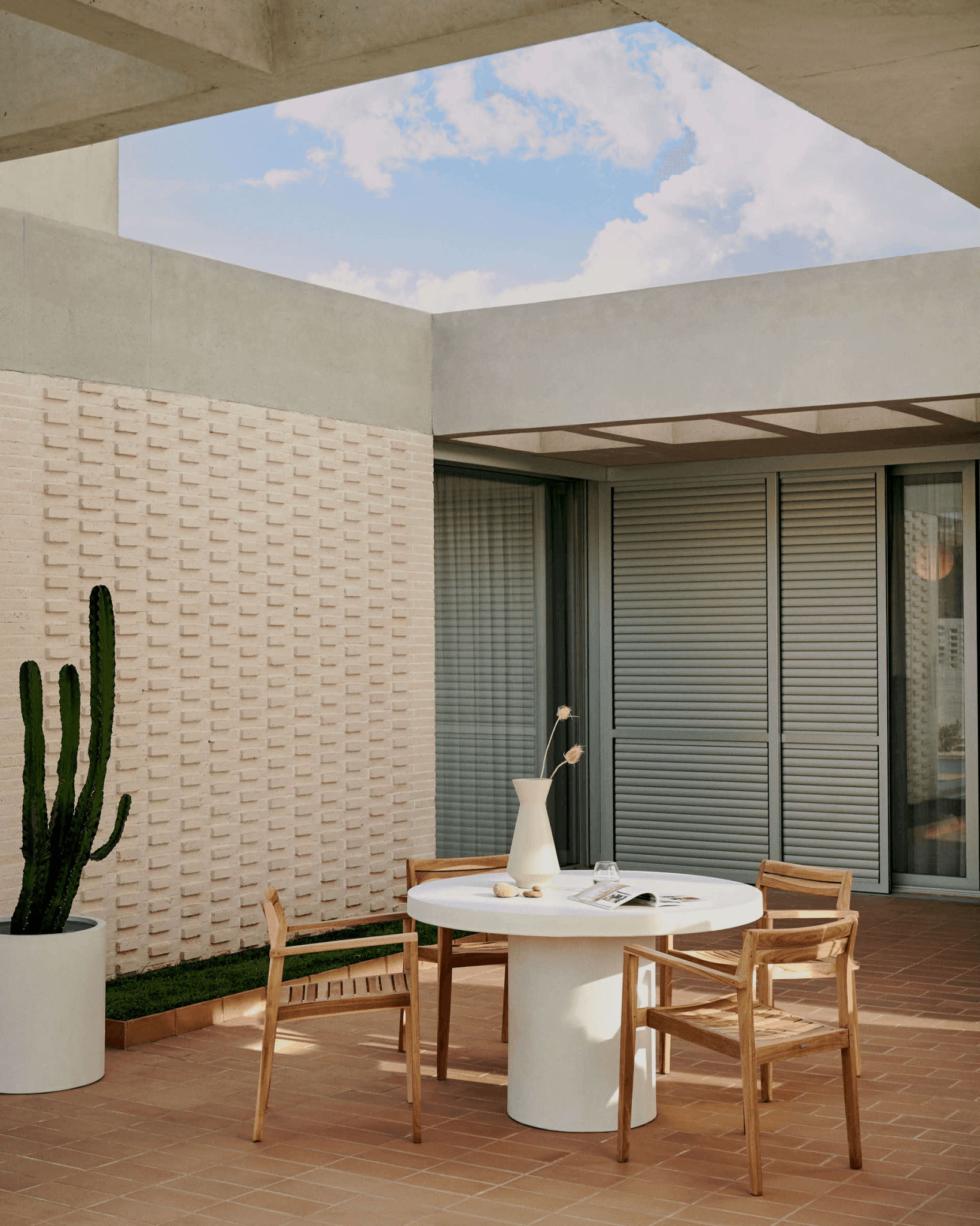 AIGUABLAVA Gartentisch aus weißem Zement