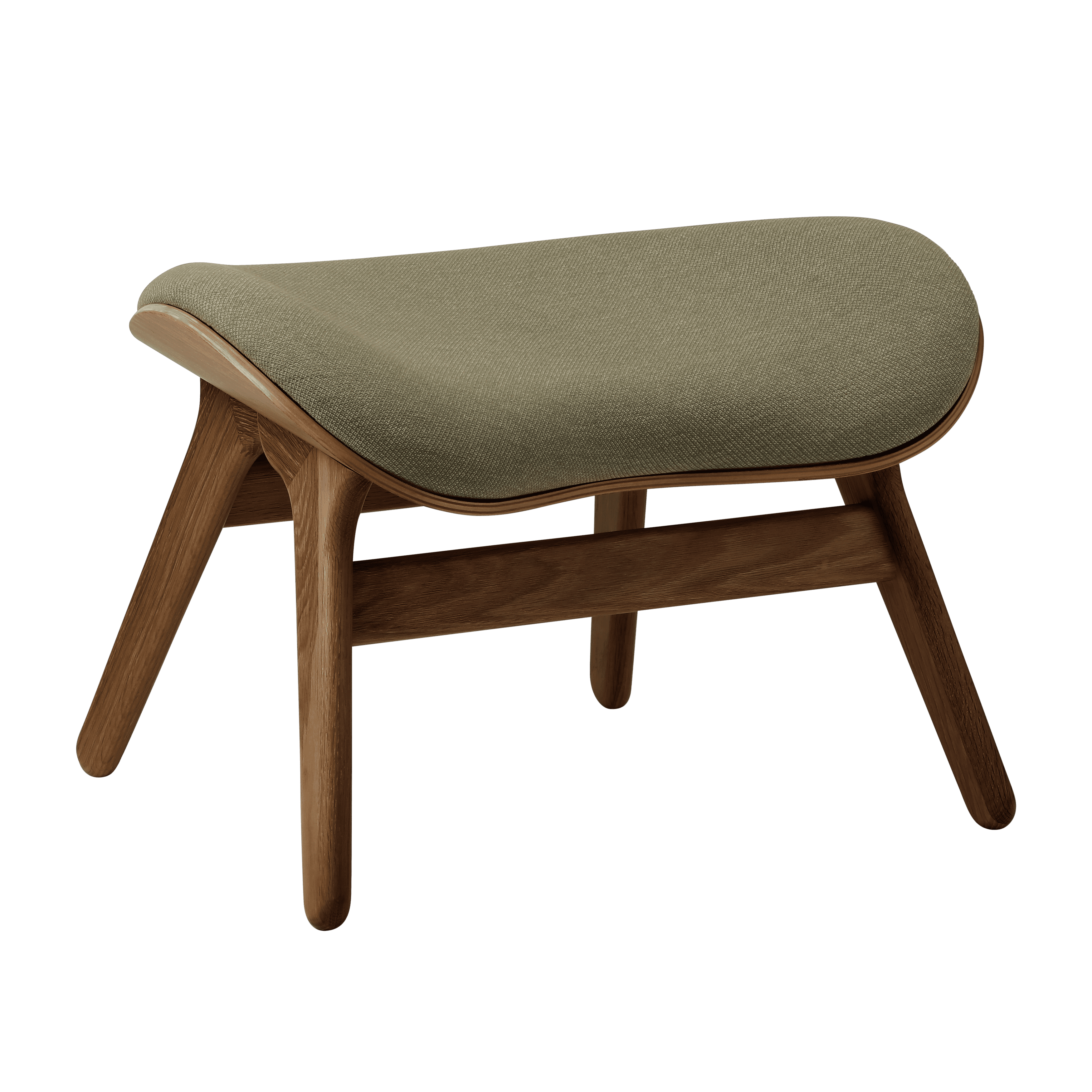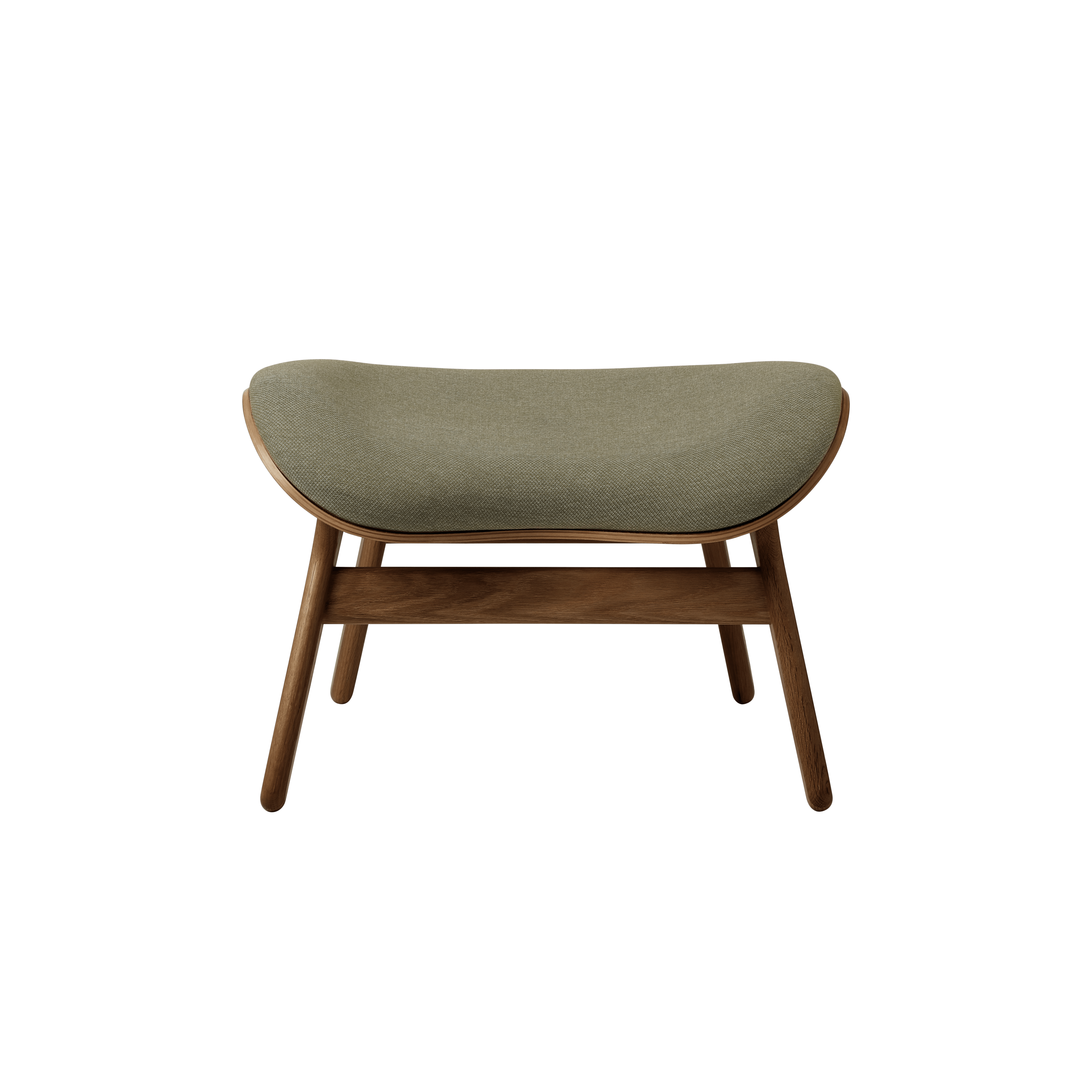 Die Ottomane Conversation Piece ist in drei Farbvarianten erhältlich: Eiche, dunkle Eiche und schwarze Eiche, wobei jede in acht sorgfältig ausgewählten Farbtönen des Stoffes Horizons angeboten wird, der zu 100 % aus recycelten Materialien besteht oder aus zwei Stoffen der Kollektion Teddy gefertigt ist.
