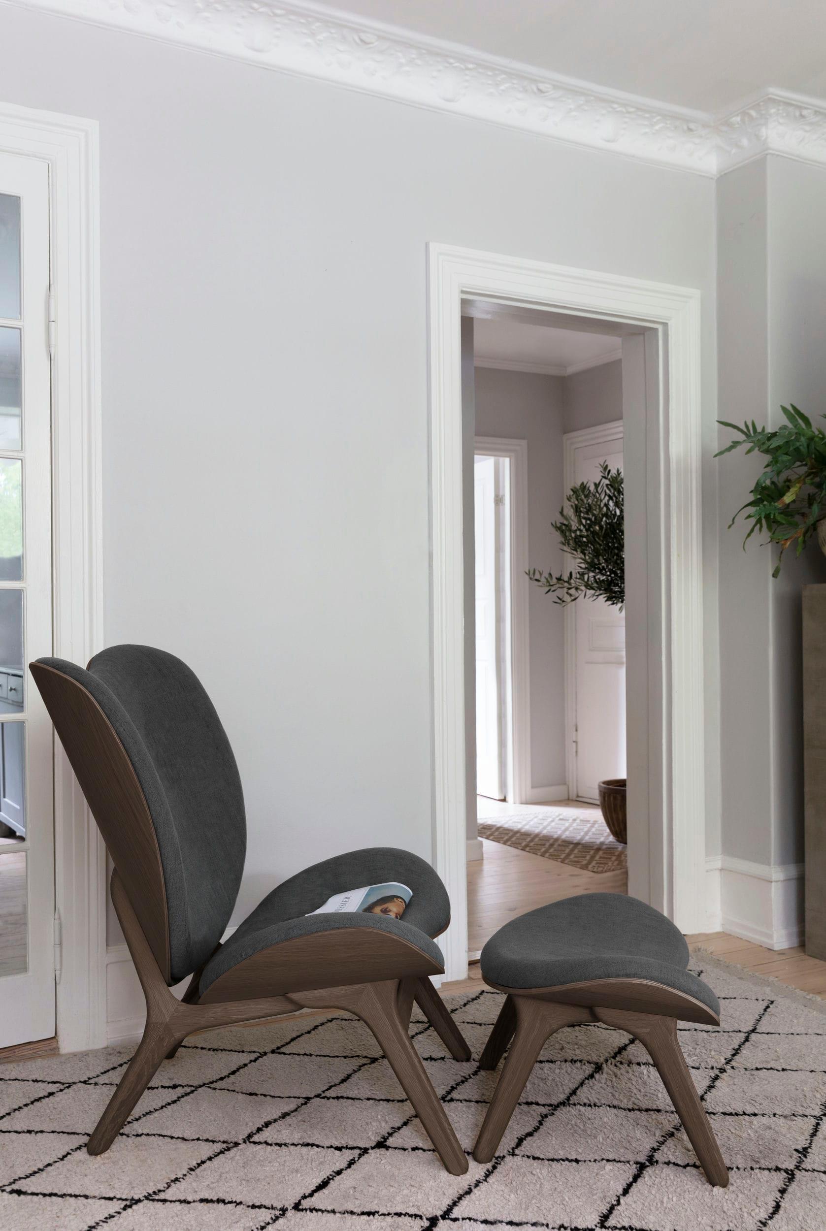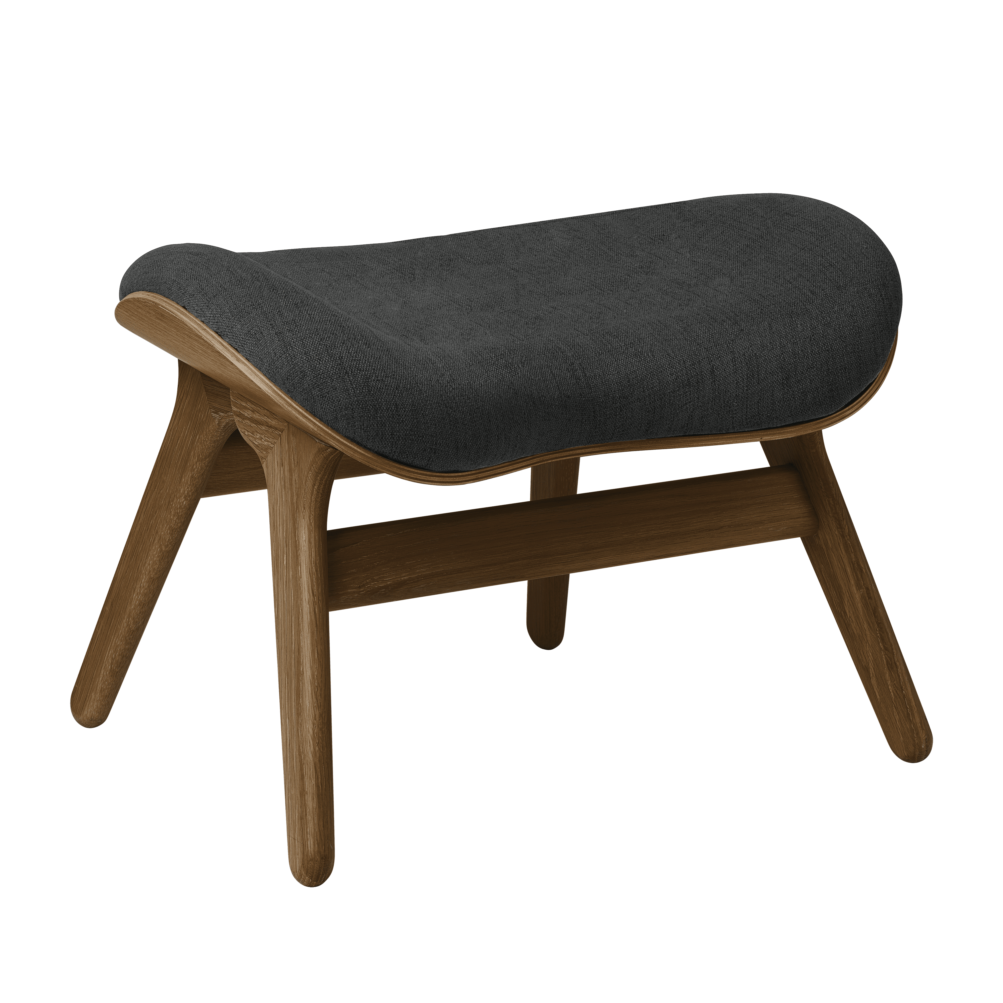 Die Ottomane Conversation Piece ist in drei Farbvarianten erhältlich: Eiche, dunkle Eiche und schwarze Eiche, wobei jede in acht sorgfältig ausgewählten Farbtönen des Stoffes Horizons angeboten wird, der zu 100 % aus recycelten Materialien besteht oder aus zwei Stoffen der Kollektion Teddy gefertigt ist.