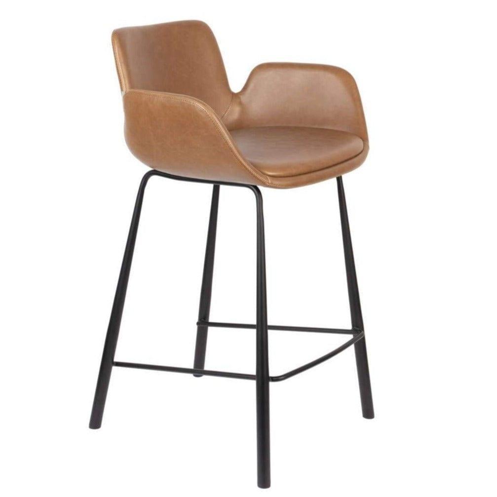 Der Sitz besteht aus braunem Ökoleder, das dem Ganzen Eleganz und Charakter verleiht. Es wird eine großartige Ergänzung für retro, vintage oder loftartige Innenräume sein.