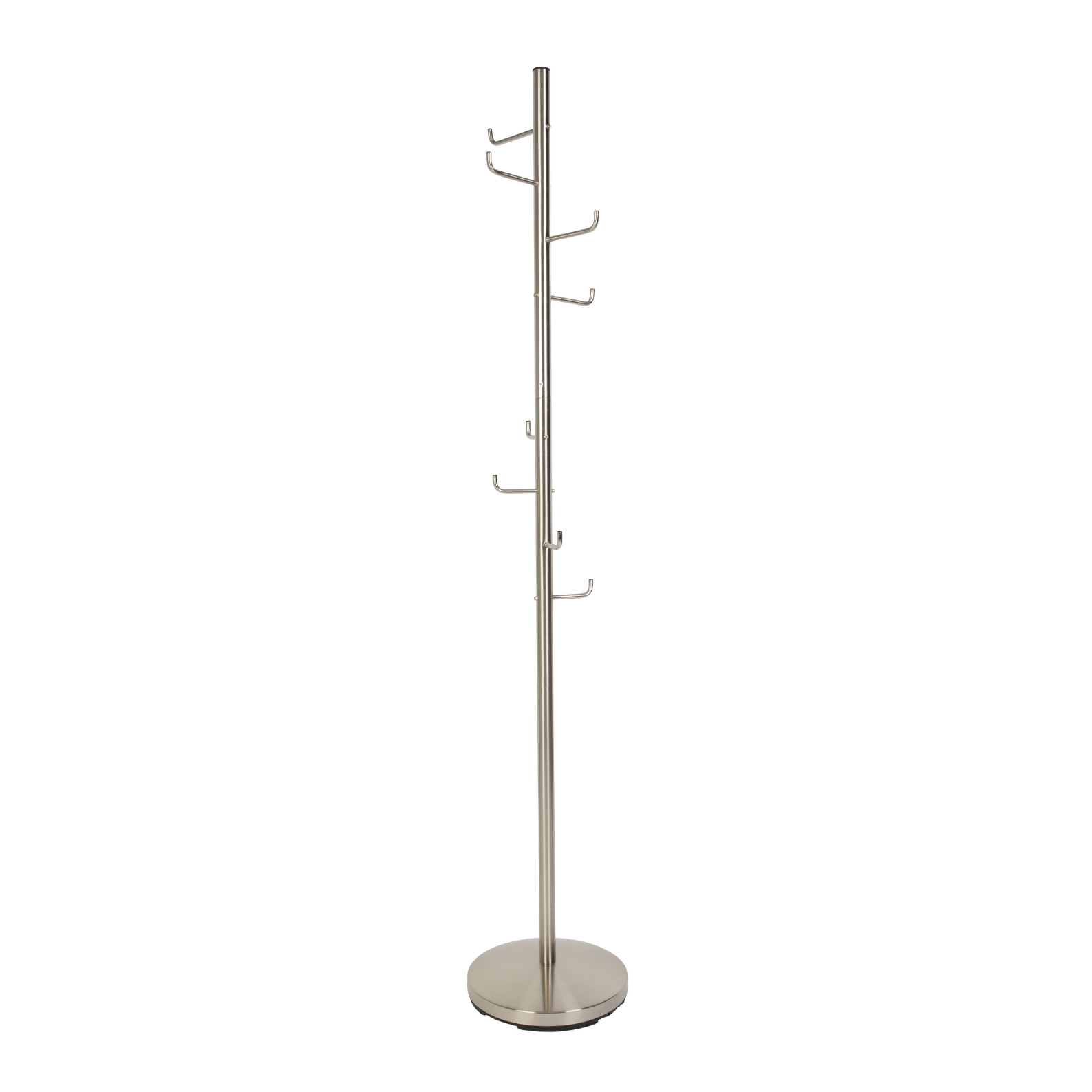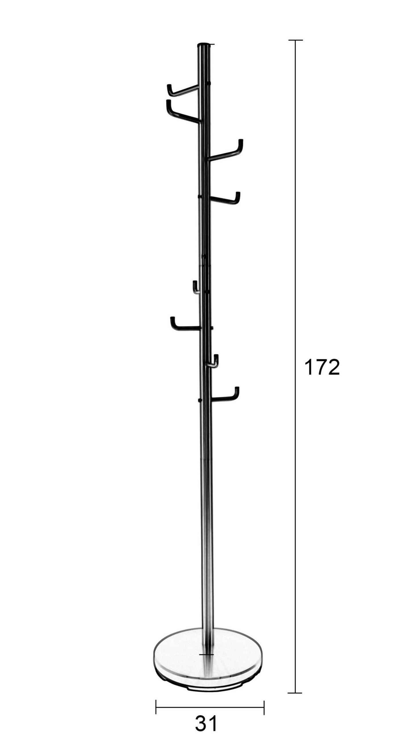 Entdecken Sie die Funktionalität und Eleganz mit gehaartem Kleiderbügel. Perfekt für kleine Flure und Büros, dieses eine Stehender Kleiderbügel Es ist mit kleinen Haken für Mäntel ausgestattet, die perfekt zum Aufhängen von Mänteln, Schals und anderen Accessoires geeignet sind. Fertig in stilvollem Nickel, Aufhänger Hooked ist auch eine großartige Schlafzimmerlösung und bietet einen ästhetischen und praktischen Ort, um Kleidung aufzubewahren. Organisieren Sie Ihren Raum und fügen Sie dank des universellen Hakenbügels Eleganz hinzu!