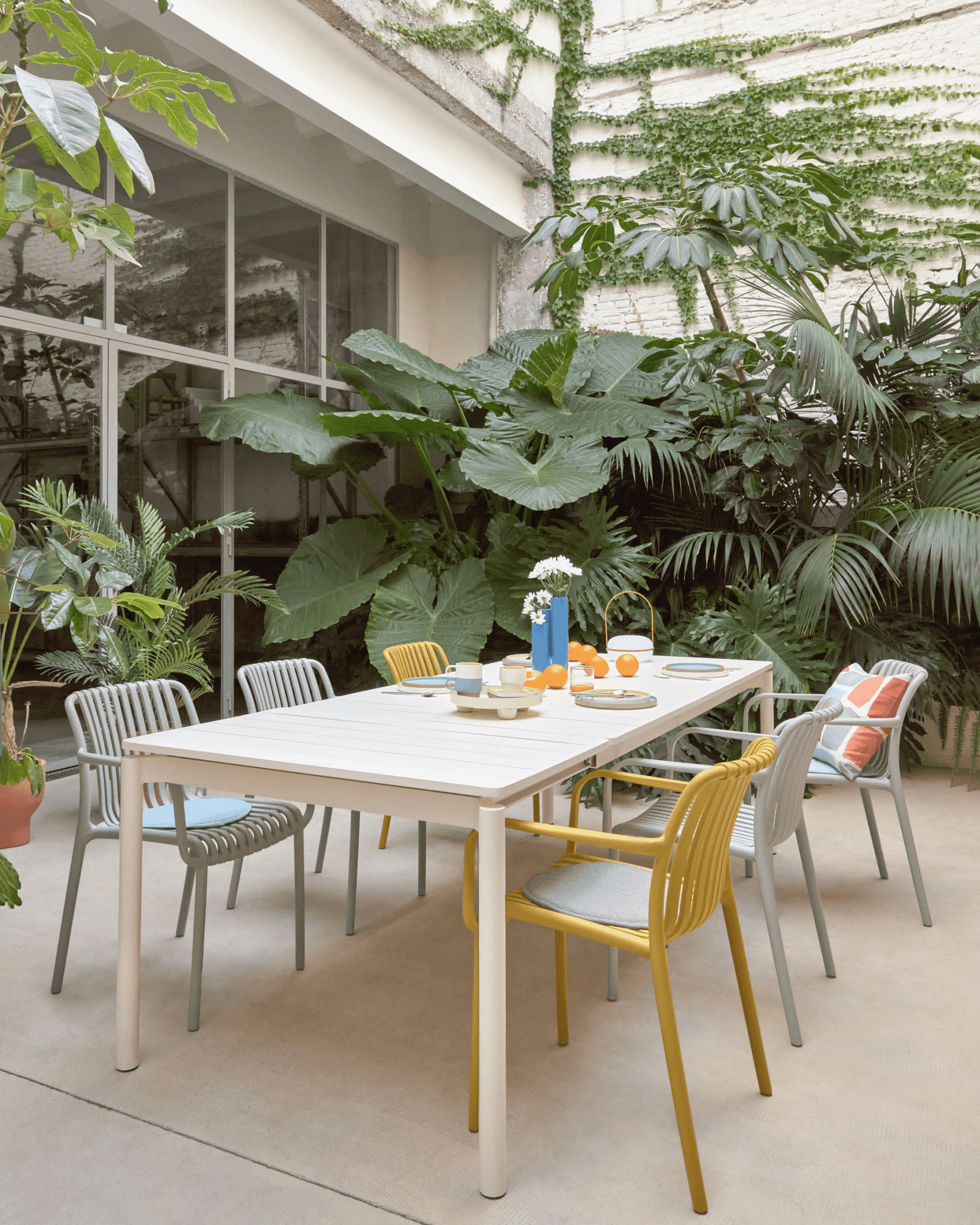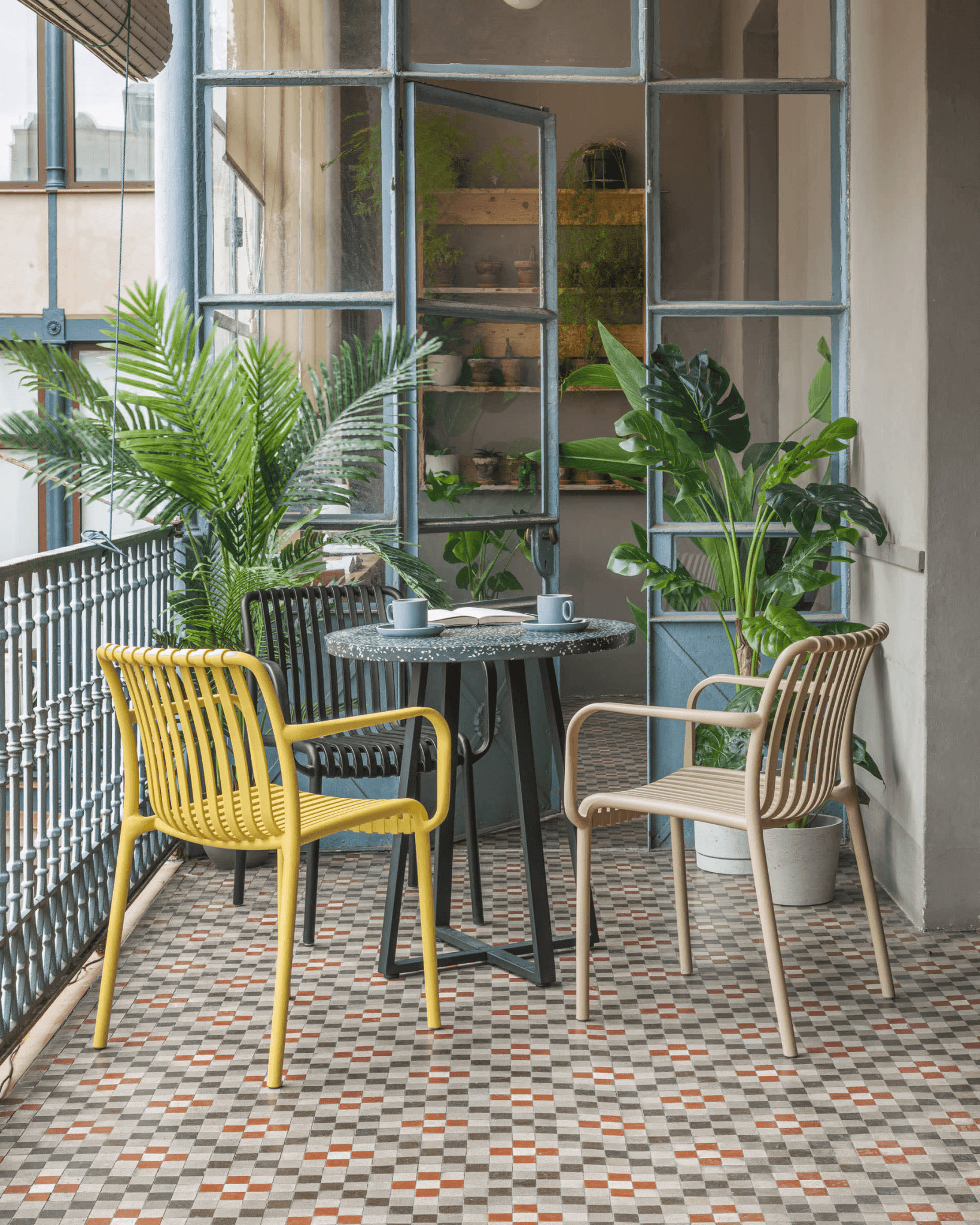 Aus Recycling von Plastik, gelber Stuhl Isabellini ist eine ausgezeichnete Wahl für diejenigen, die sich um die Umwelt interessieren. Sein haltbares Design macht es gegen UV -Strahlung, was es zu einem idealen Möbel für den Außengebrauch macht, unabhängig von den Wetterbedingungen.