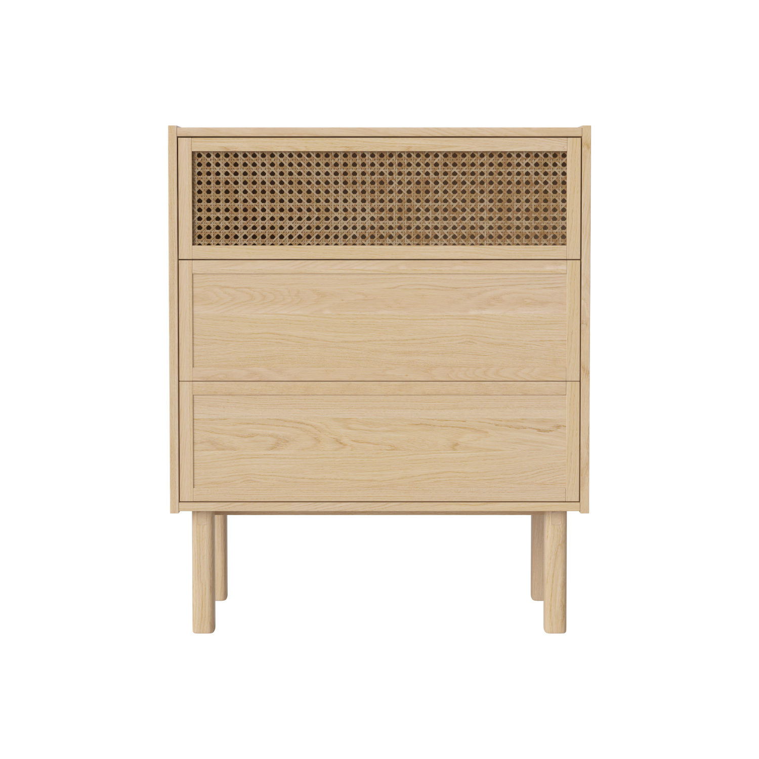 Kommode Cana aus der Cana -Serie ist eine Kombination aus Funktionalität und leichtem, minimalistischem Design. Die charakteristische Vorderseite des Wicker Braids verleiht ihm einen ikonischen und subtilen Look, der perfekt modernen Innenräumen entspricht. Das Projekt, das von der Atmosphäre der dänischen Küstenhotels inspiriert wurde, führt zu Harmonie und Frieden in den Raum. Kommode Es bestand aus FSC® -zertifiziertem Holz, das seine nachhaltige Natur und Haltbarkeit hervorhebt.