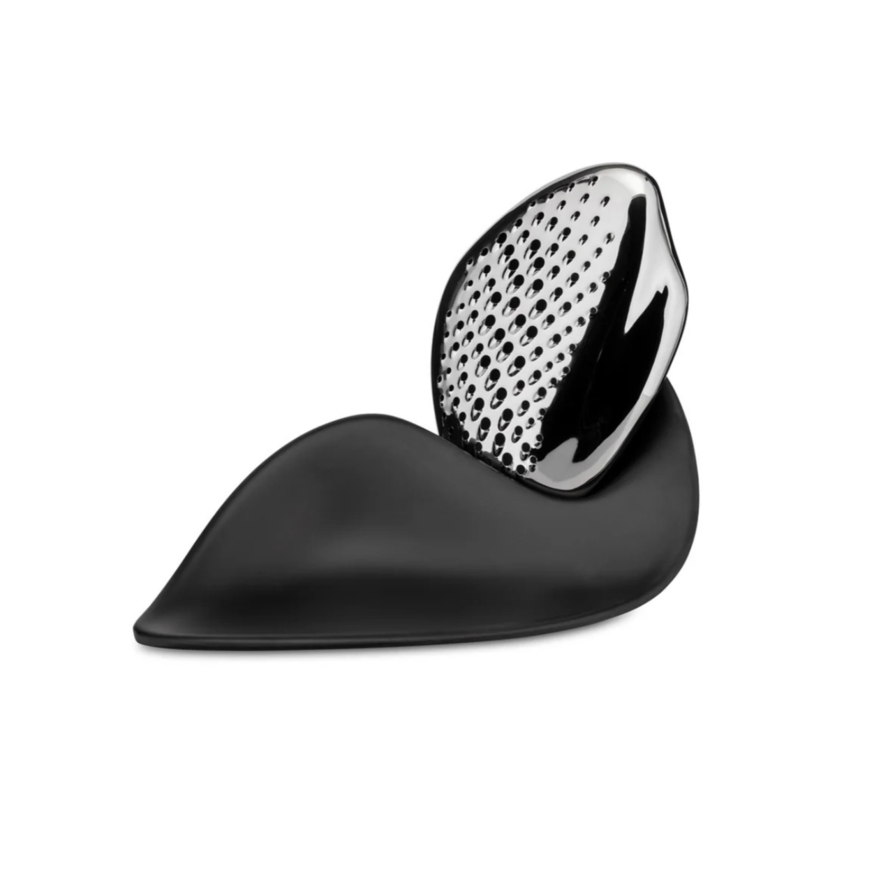 Käse Die Form wurde entwickelt, um sich perfekt an die Form der Hand anzupassen, wodurch sie bequem und angenehm zu bedienen ist. Seine organische Form wird von Steinen inspiriert, die durch Wasser und Wind geglättet werden, und bestand aus Edelstahl unter Verwendung eines komplizierten Produktionsprozesses. Der Name "Form" bezieht sich auf sein Hauptmerkmal - in Italienisch bedeutet "Form". Das Muster asymmetrischer Löcher ermöglicht das Reiben von Käse mit einer Vielzahl von Textur, was den Gerichten einen einzigartigen Charakter verleiht. Reibe Es ist mit einem Stand ausgestattet und erzeugt zusammen ein effektives dekoratives Element.