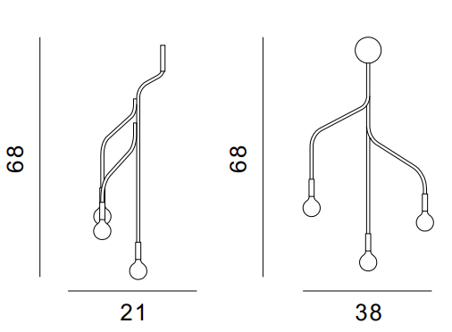 Die Vekst Wandleuchte ist eine einzigartige Wandbeleuchtungslösung, die durch ihre skulpturale Form besticht, die von der natürlichen Verzweigung von Bäumen inspiriert ist. Die schlanken Stahlarme, die an Äste erinnern, breiten sich asymmetrisch aus und bilden eine dynamische, fast organische Komposition. An den Enden jedes Arms befindet sich ein Kugellampenschirm aus geätztem Opalglas, das an Pflanzenknospen erinnert – ein subtiles Detail, das die poetische Natur dieser Form unterstreicht.