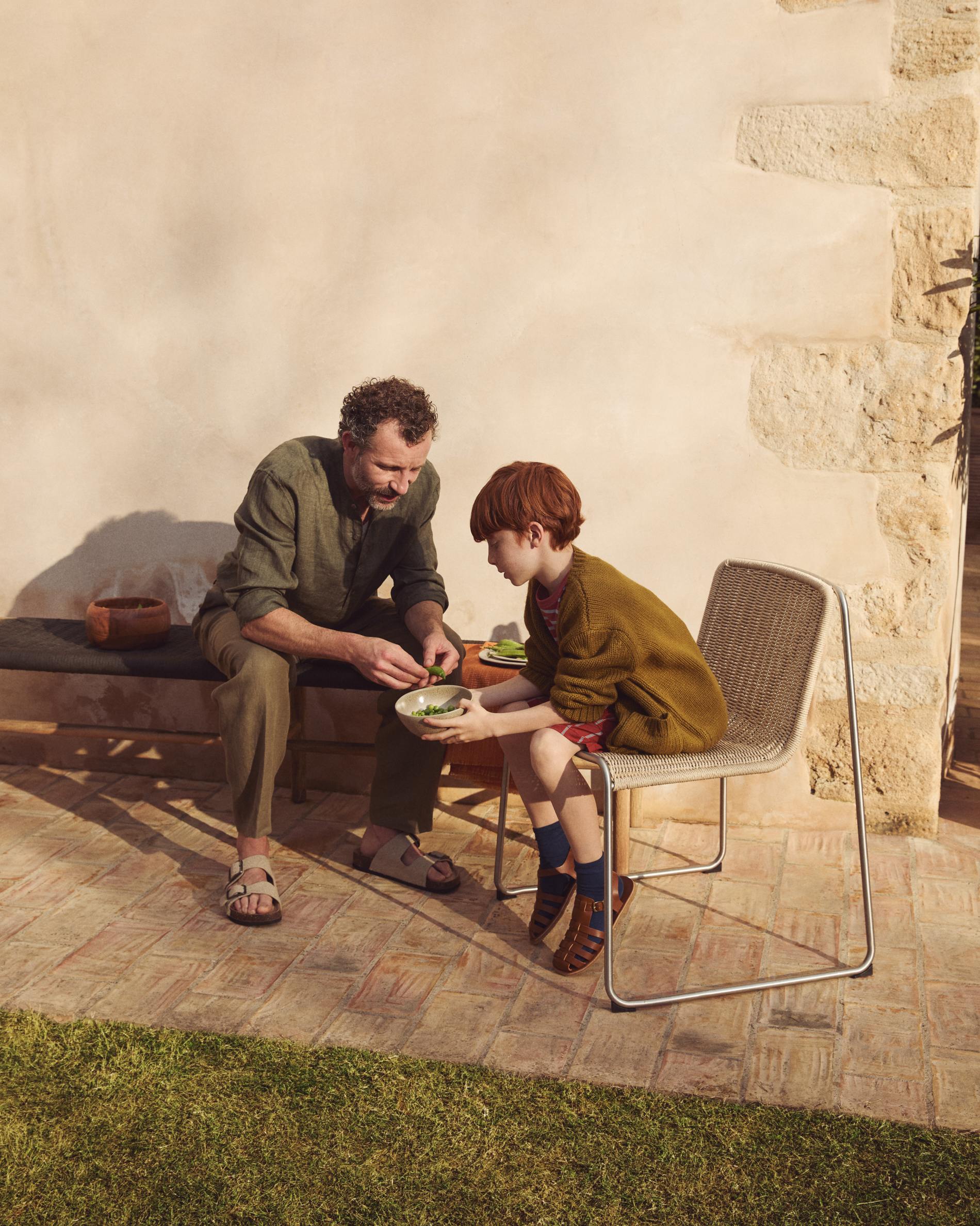 Der Gartenstuhl Tavari vereint Eleganz, Funktionalität und Langlebigkeit und wurde für den ganzjährigen Einsatz im Freien entworfen. Seine Stahlkonstruktion sorgt für Stabilität, während die gebürstete Oberfläche aus rostfreiem Stahl AISI 304, reich an Nickel und Chrom, außergewöhnlichen Schutz gegen Korrosion und Oxidation bietet. Die Sitzfläche und die Rückenlehne sind von Hand mit beigem, UV-beständigem synthetischem Seil umwickelt, das gegen Regen und Temperaturschwankungen resistent ist. Dieses Material behält nicht nur seine Form und Farbe, sondern sorgt auch für zusätzlichen Komfort bei der Nutzung.