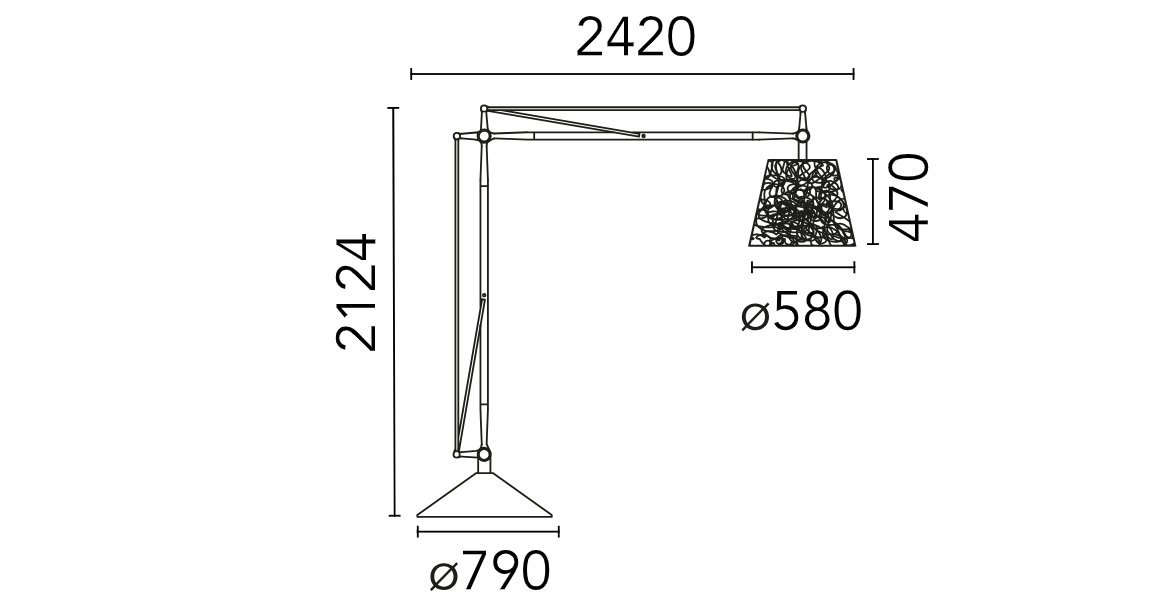 Die beeindruckend große Lampe eignet sich hervorragend für den Garten, die Terrasse sowie für öffentliche Räume. Niemand wird einem so avantgardistischen Accessoire gleichgültig gegenüberstehen. Die solide Verarbeitung aus hochwertigen Materialien gewährleistet eine lange Lebensdauer. Die Lampe ist Teil der Kollektion der Marke FLOS, die für den Außenbereich konzipiert wurde.