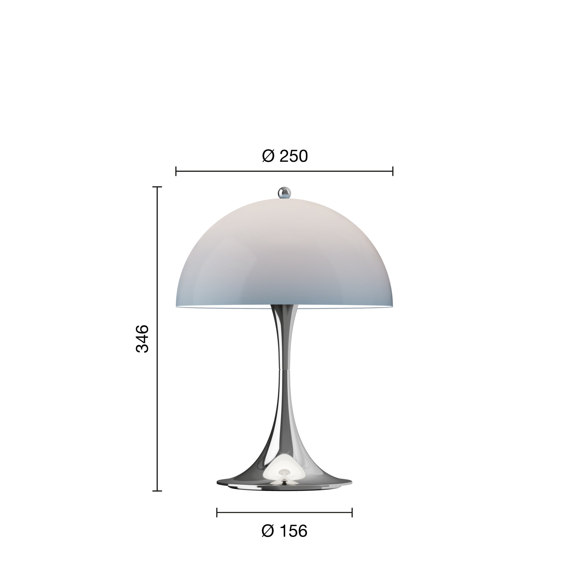 Tragbare Lampe PANTHELLA 250 grau-blau opal mit verchromtem Fuß