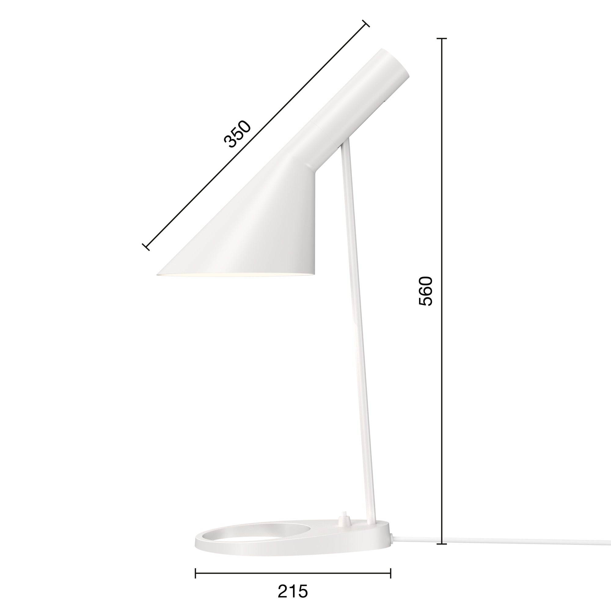 Tischlampe AJ ist ein Klassiker des dänischen Designs, entworfen von Arne Jacobsen im Jahr 1957 für das berühmte Hotel SAS Royal in Kopenhagen. Ihre charakteristische Form, inspiriert von Geometrie und Architektur, vereint auf perfekte Weise Einfachheit mit Funktionalität. Tischlampe AJ strahlt angenehmes, nach unten gerichtetes Licht aus, das durch den weißen, innen lackierten Schirm weich und augenfreundlich ist. Der verstellbare Neigungswinkel des Schirms ermöglicht es, die Lichtrichtung anzupassen, was sie zur idealen Wahl für Büro, Schlafzimmer oder Wohnzimmer macht.