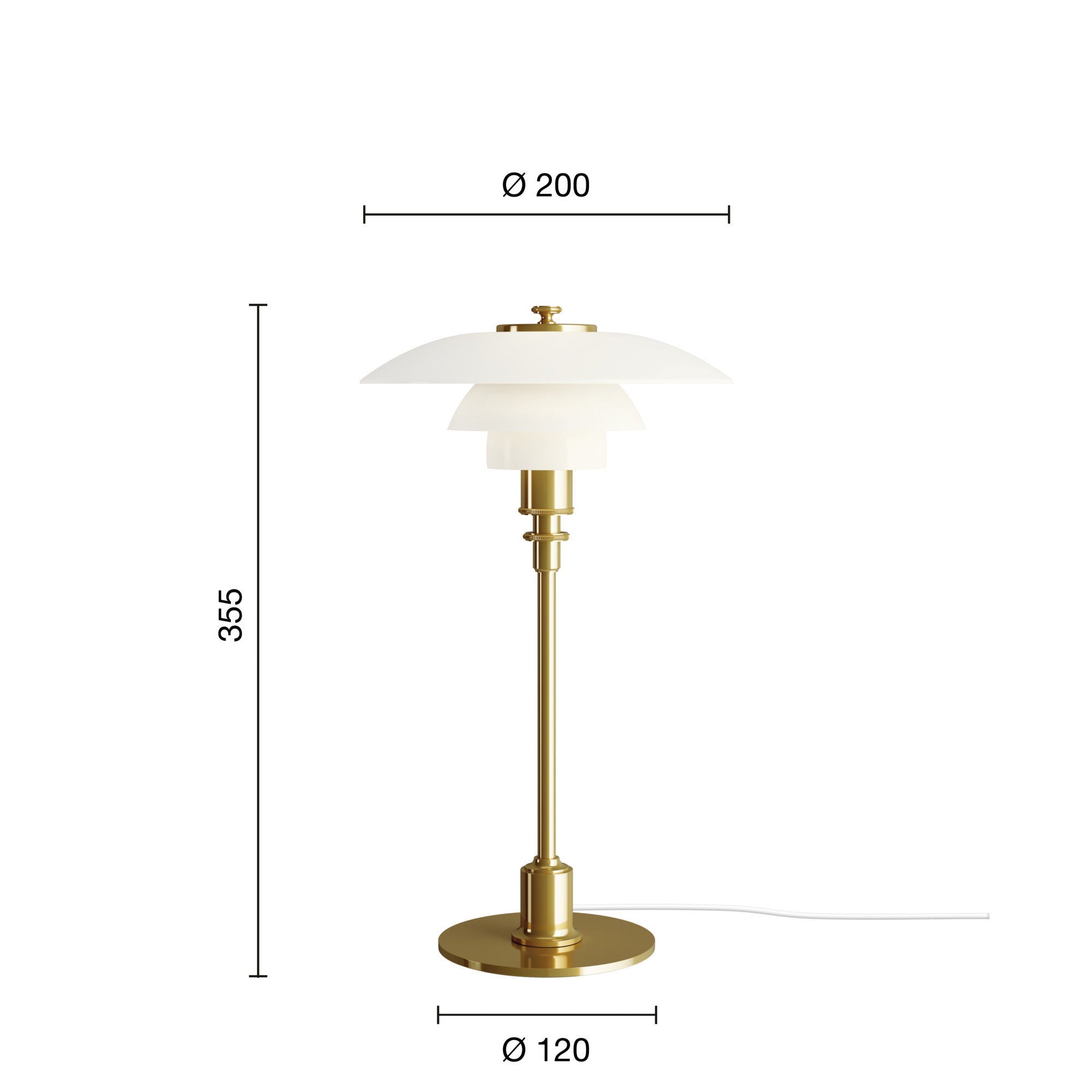 Tischlampe PH 2/1 weiß mit messingfarbenem Fuß