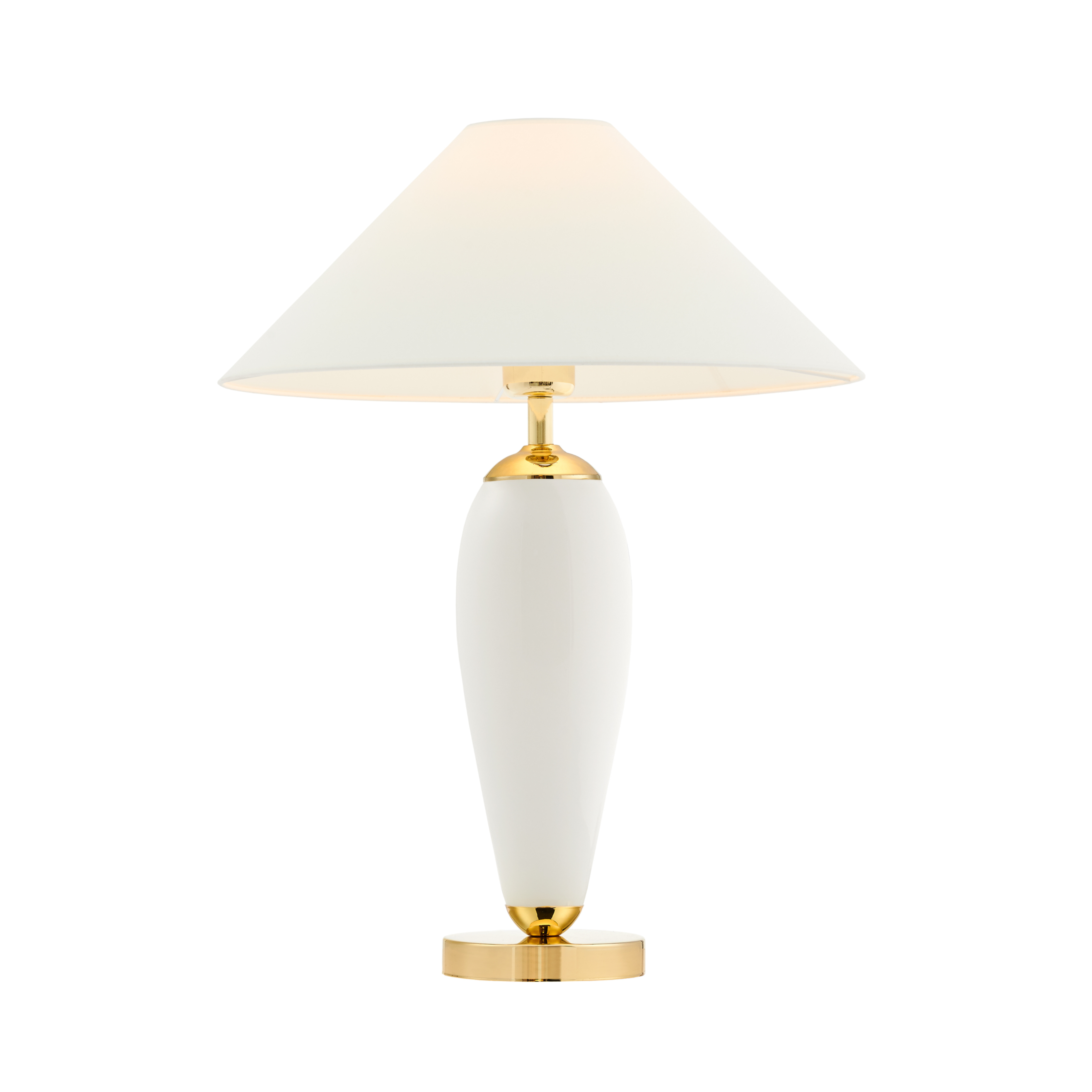 Tischlampe REA weiß mit milchigem Sockel und goldener Veredelung