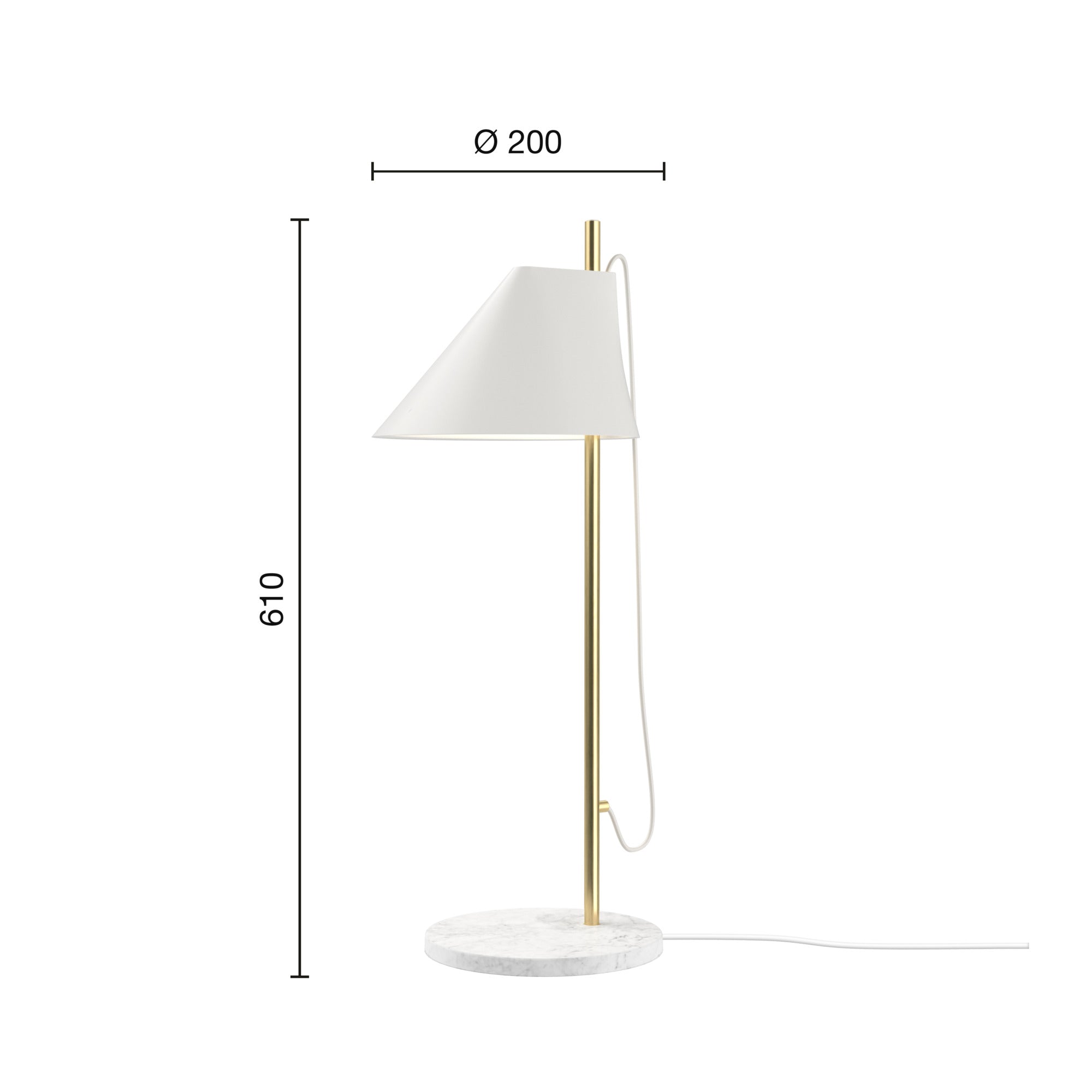 Tischlampe Yuh ist eine moderne Kombination aus Eleganz und Funktionalität, entworfen von dem Duo GamFratesi für Louis Poulsen im Jahr 2017. Ihre minimalistische Form sowie die Möglichkeit zur Höhenverstellung, Drehung und Neigung des Schirms machen die Tischlampe perfekt anpassbar an die Bedürfnisse des Benutzers – sowohl während der Arbeit als auch beim abendlichen Entspannen. Die innere, weiße Oberfläche des Schirms und seine charakteristische Verjüngung sorgen für ein sanftes, nach unten gerichtetes Licht, während die subtile Spaltbeleuchtung nach oben einen zarten, stimmungsvollen Effekt erzeugt.