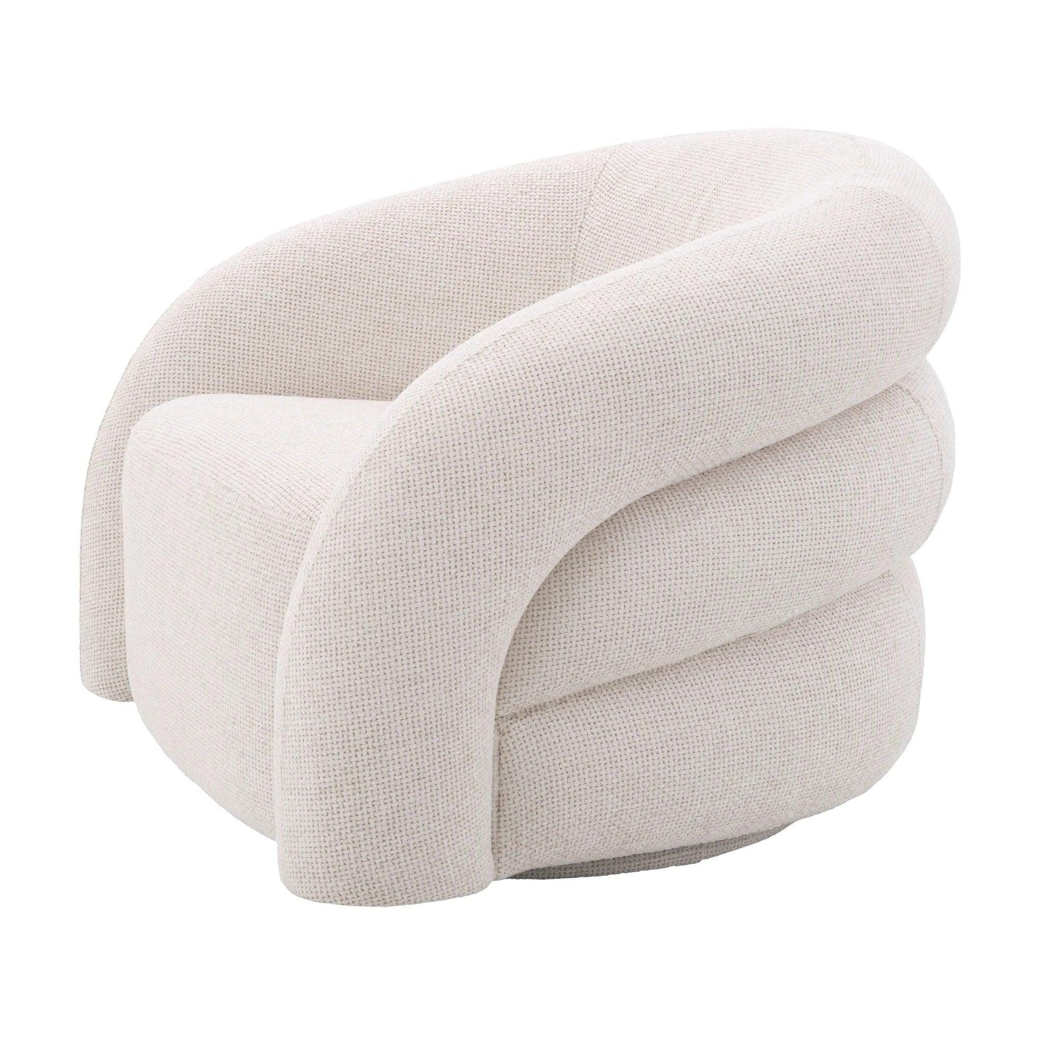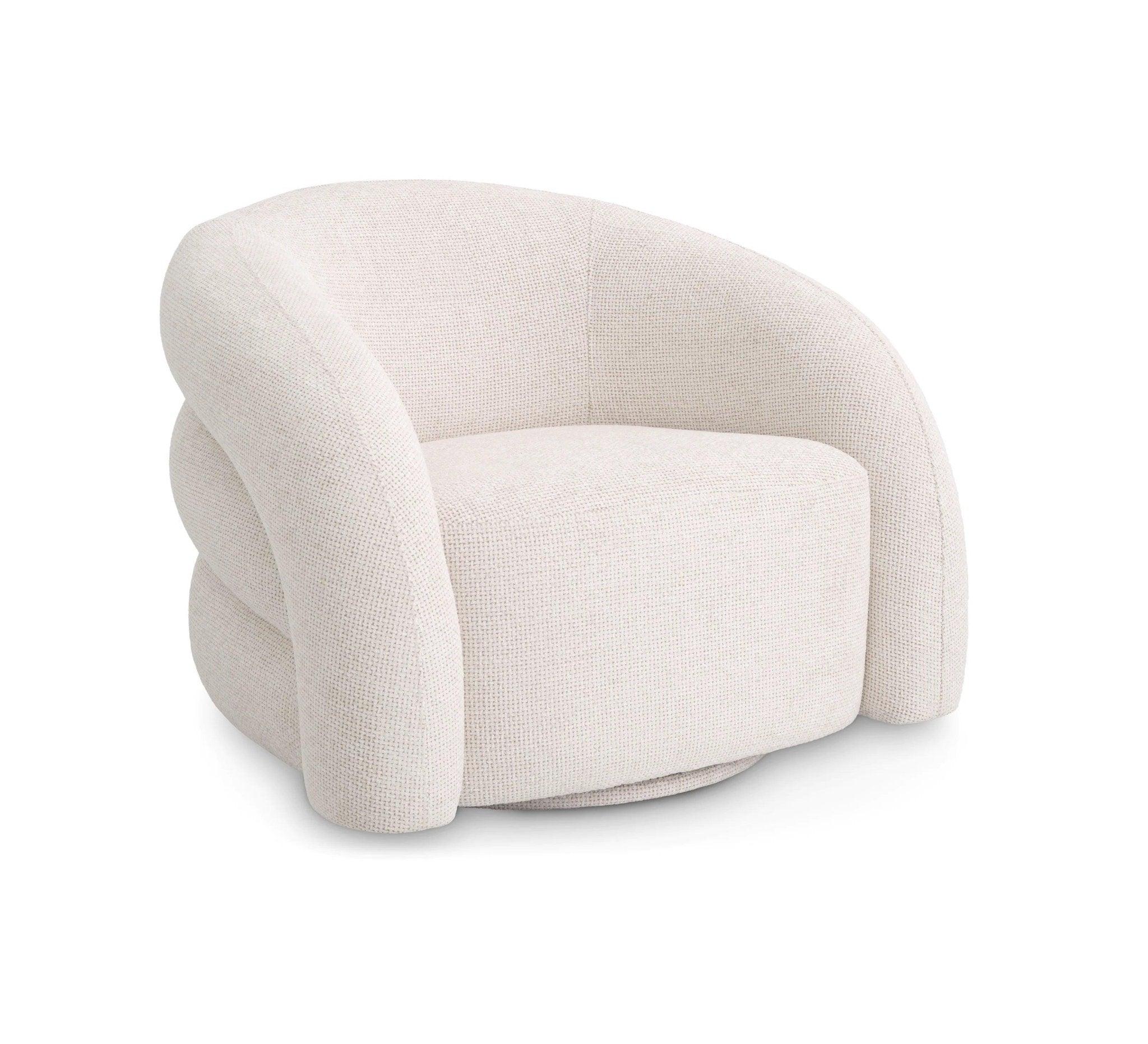 Seine ausdrucksstarken, fast künstlerischen Formen verleihen dem Innenraum einen einzigartigen Charakter. Es ist ein Möbelstück, das nicht nur Funktionen hinzufügt, sondern auch ins Auge fällt und in den Mittelpunkt jedes Raums wird. Lysa -Polster in einem Schatten mit gebrochenem Weiß ist eine extrem stilvolle Wahl. Es ist nicht nur weich und angenehm an die Berührung, sondern gibt auch auch Rotationssessel Romanle Eleganz und Leichtigkeit. Es ist ein Möbelstück, in dem der Komfort des Sitzens Hand in Hand mit Ästhetik geht.